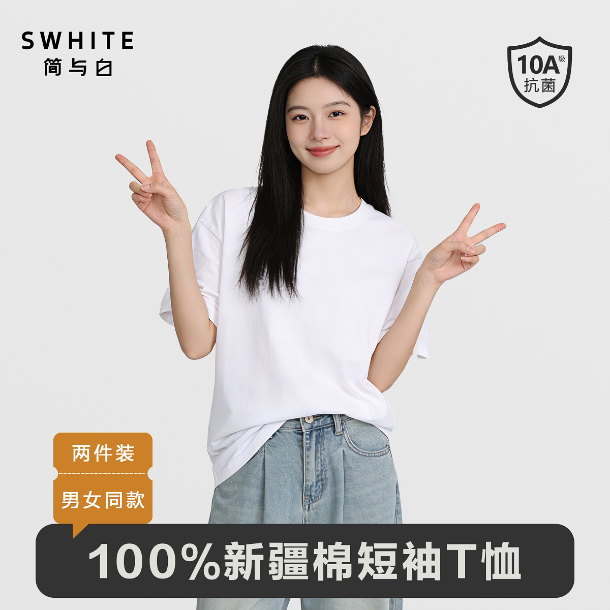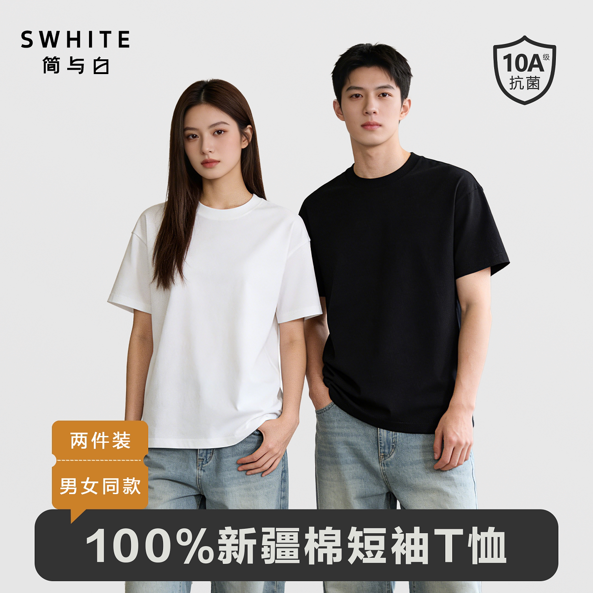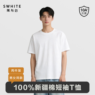 「简与白」纯棉短袖 亲肤透气小白T内搭圆领舒适百搭打底 T恤2件装