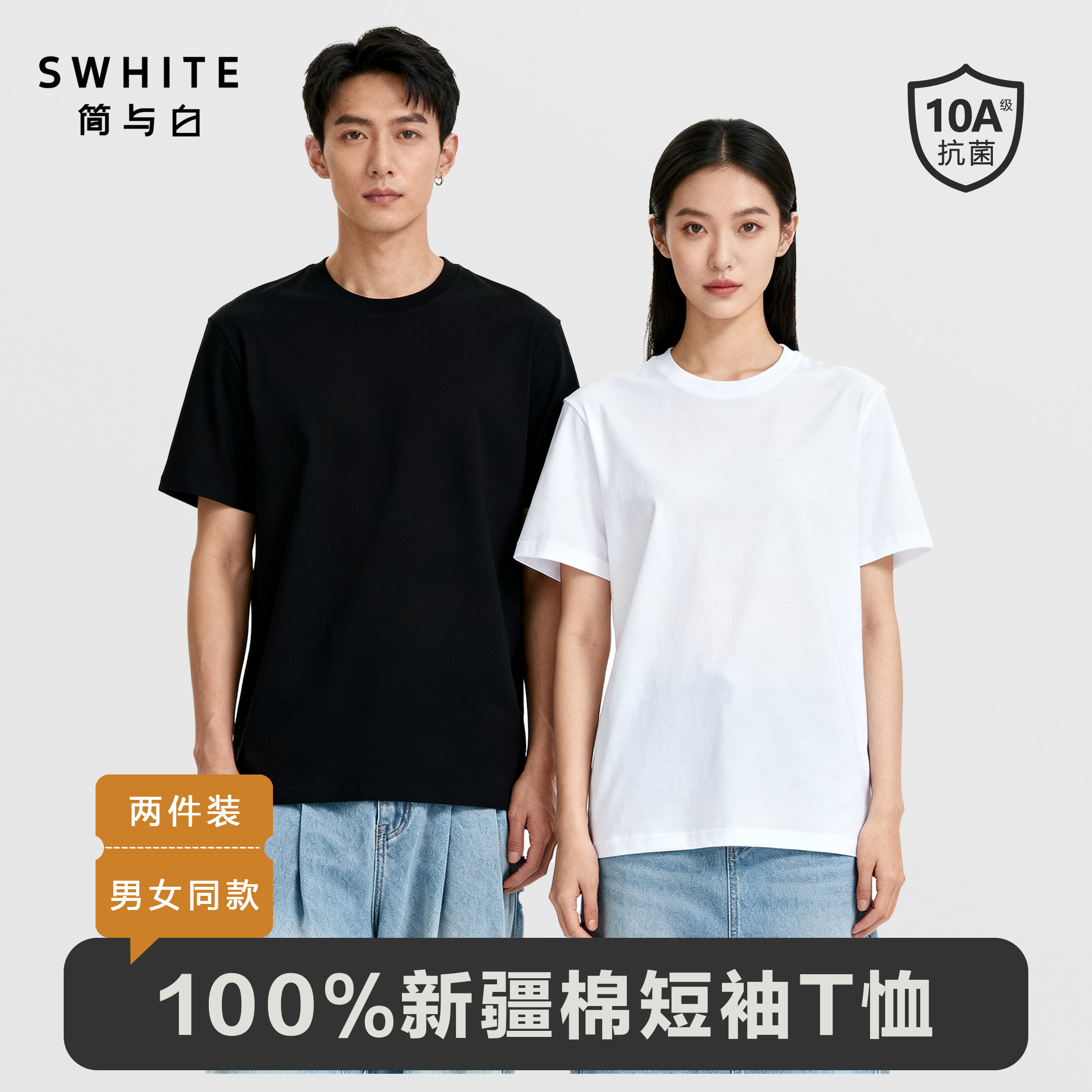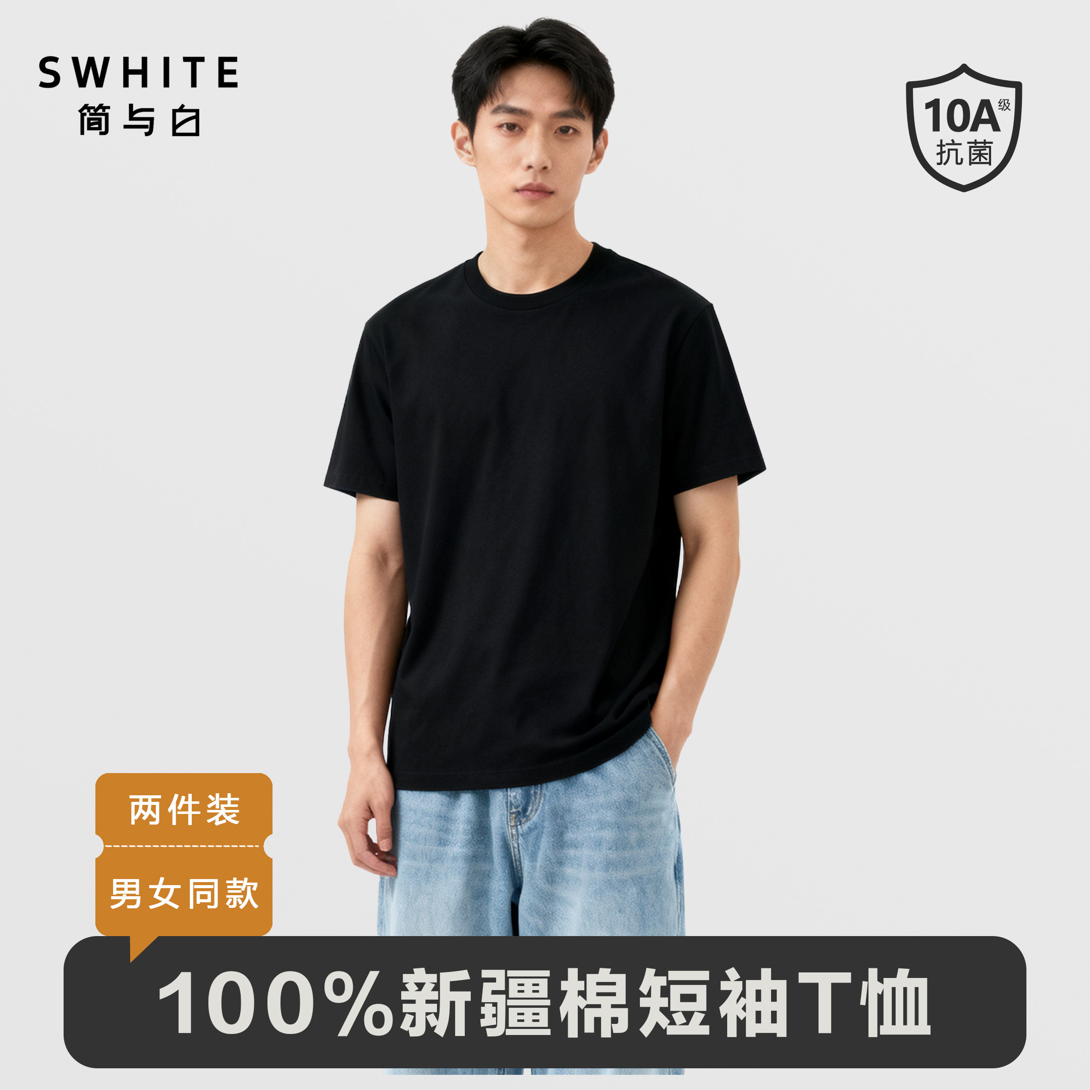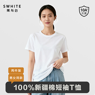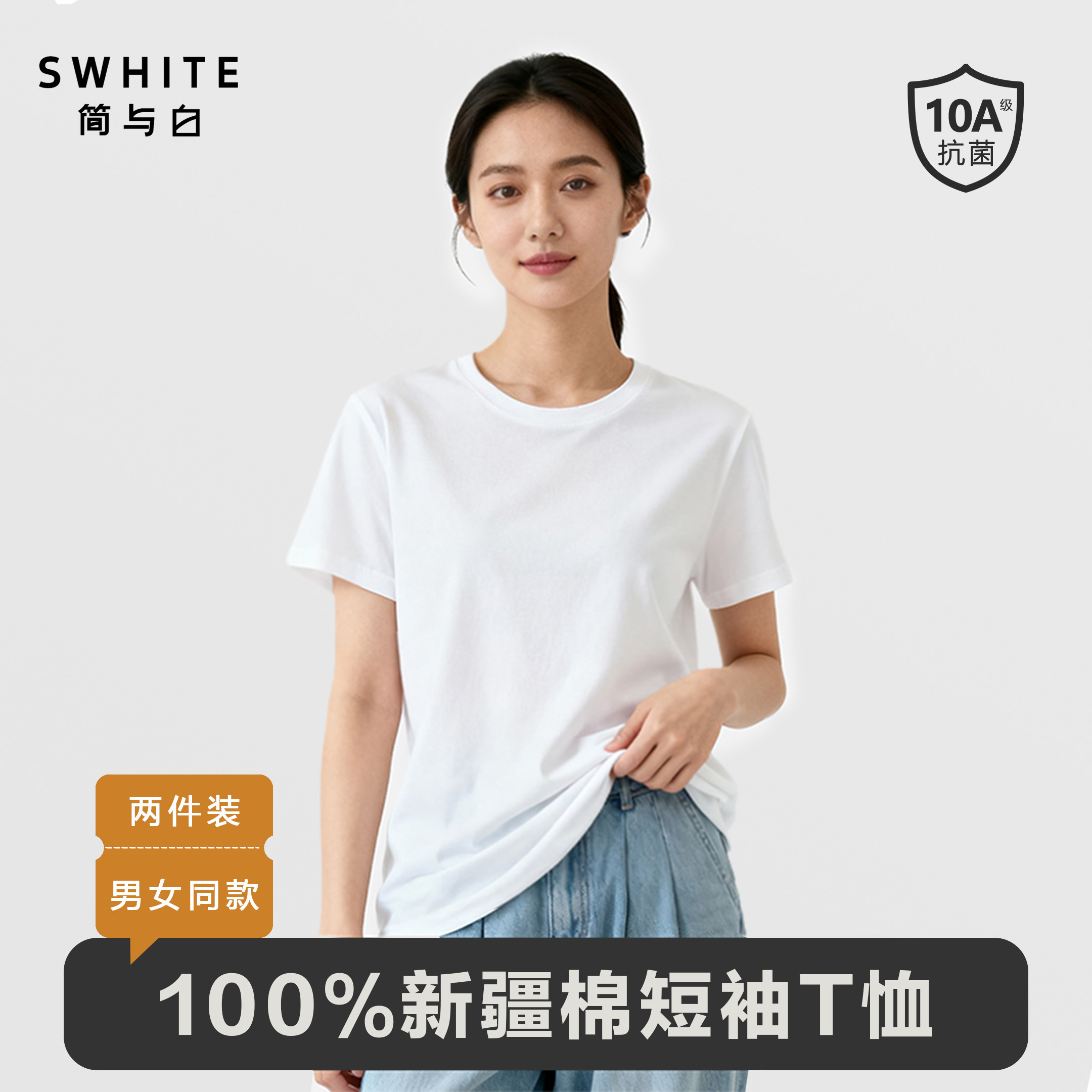 「简与白」纯棉短袖 亲肤透气白小T内搭圆领舒适百搭打底 T恤2件装