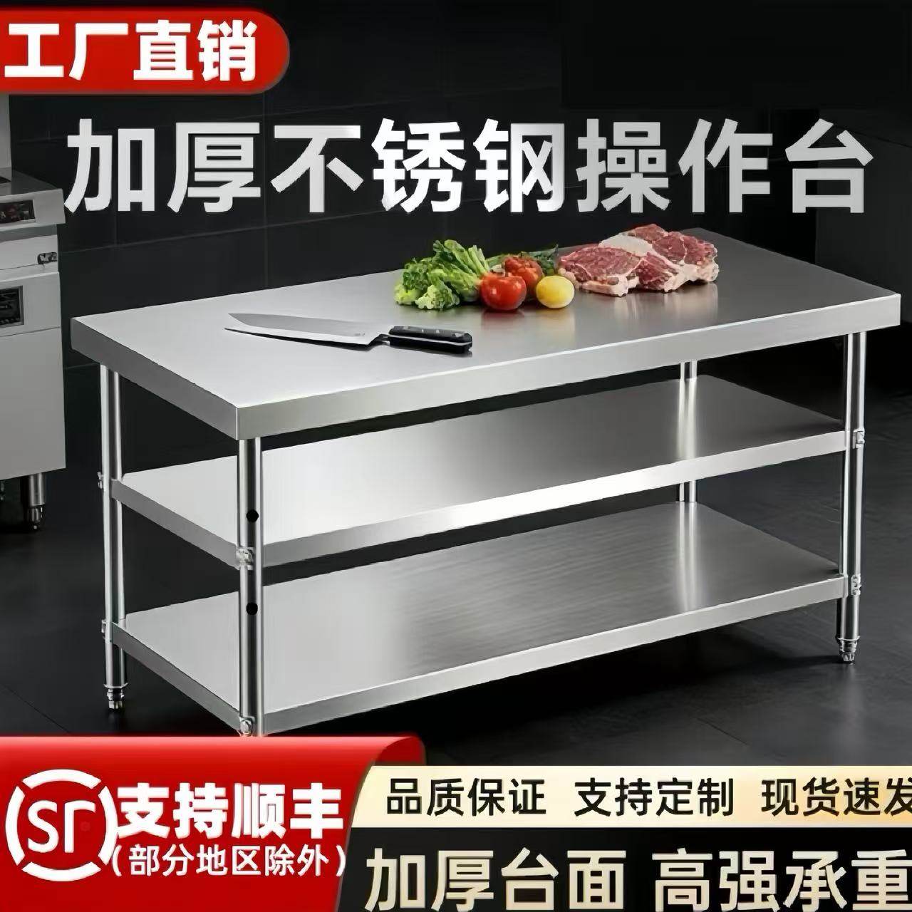特厚不锈钢双层工作台厨房酒店切菜桌饭店操作台商用打荷打包台