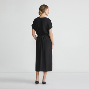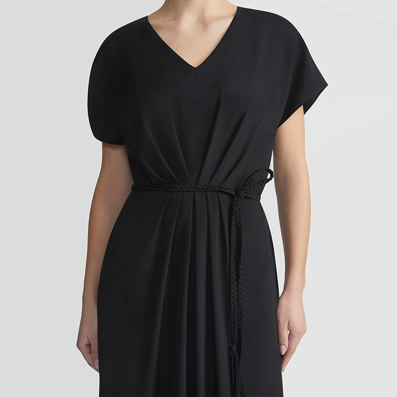 LAFAYETTE148 桑蚕丝连衣裙 拉飞逸收腰V领落肩袖