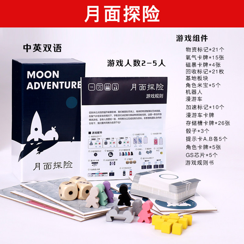 game小盒游戏系列 桌游oink 月面探险2 5人合作类生存桌游卡牌美式