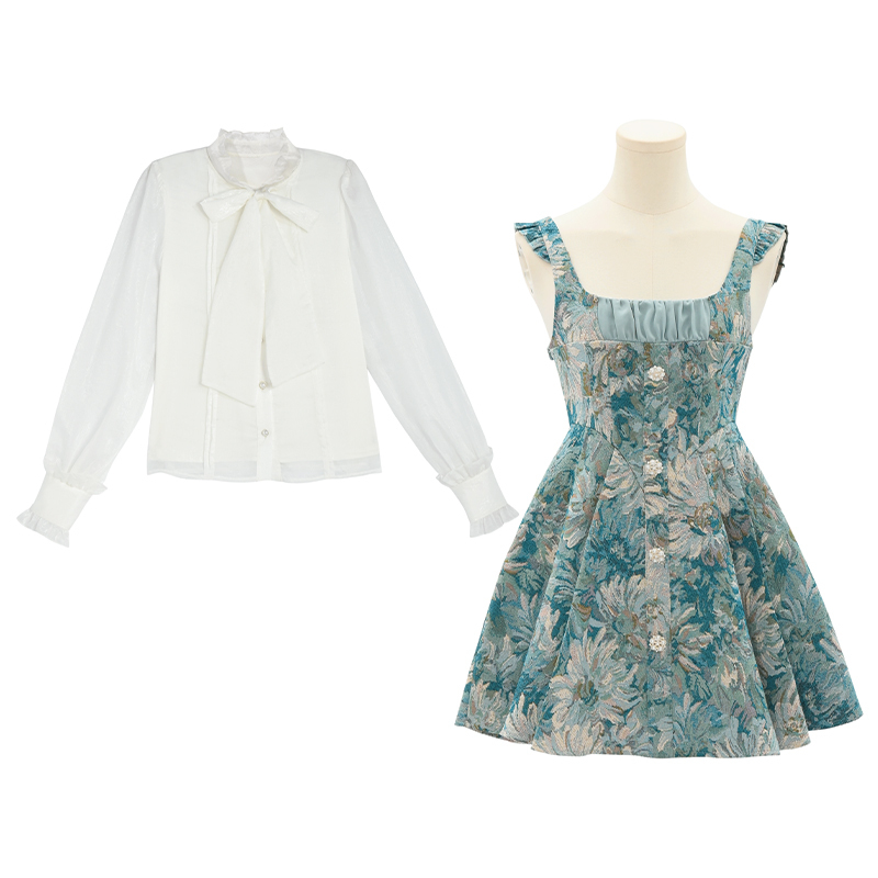 连衣裙女款 衬衫 氛围感法式 森女部落春日油画肌理感公主A字裙法式