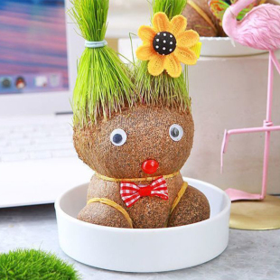 草头娃娃浇水生长儿童种植小盆栽长草娃娃幼儿园小摆件水培植物