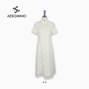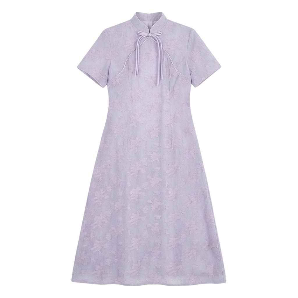 衣莎美诺夏短袖 旗袍国风印花立领紫Y540B7670 优雅连衣裙气质中式