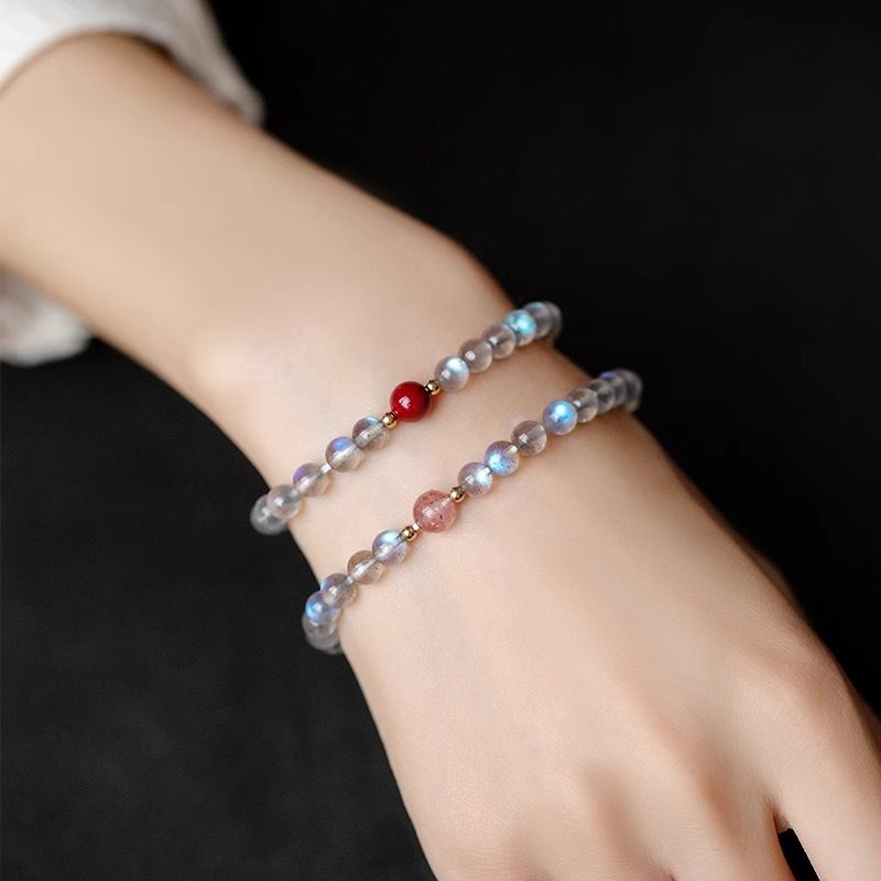 朱砂手串女男帝王砂东海水晶玛瑙翡翠玉石散珠子红手镯紫金砂手链