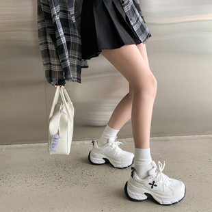 真皮休闲鞋 女增高显瘦运动休闲小白鞋 十字花厚底老爹鞋 2024新款