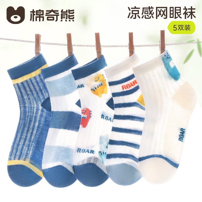 儿童袜子男童夏季 纯棉男宝透气童袜宝宝春夏网眼男孩夏天棉袜 薄款