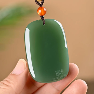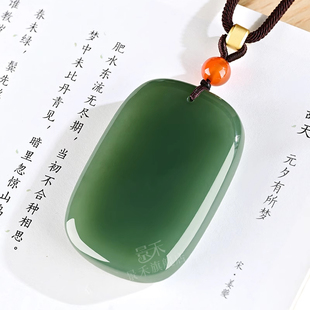 新疆和田玉平安无事牌吊坠男绿色天然玉石玉牌玉佩湖水绿项链挂件