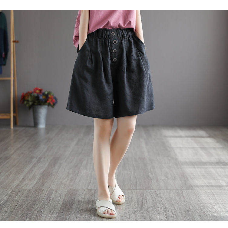 内包边显瘦休闲直筒裤 文艺夏高端100支细苎麻短裤 女松紧腰阔腿裤