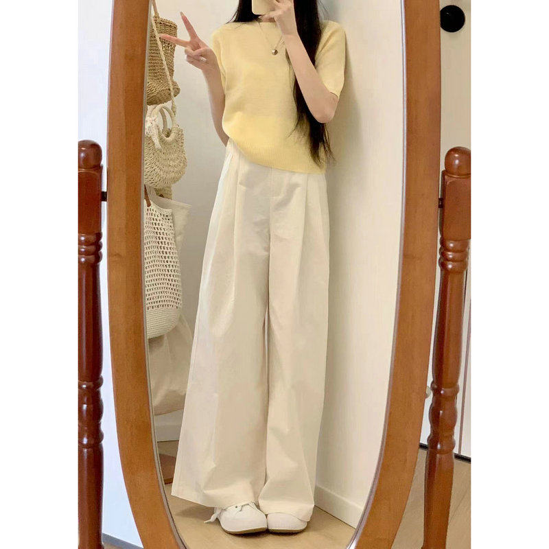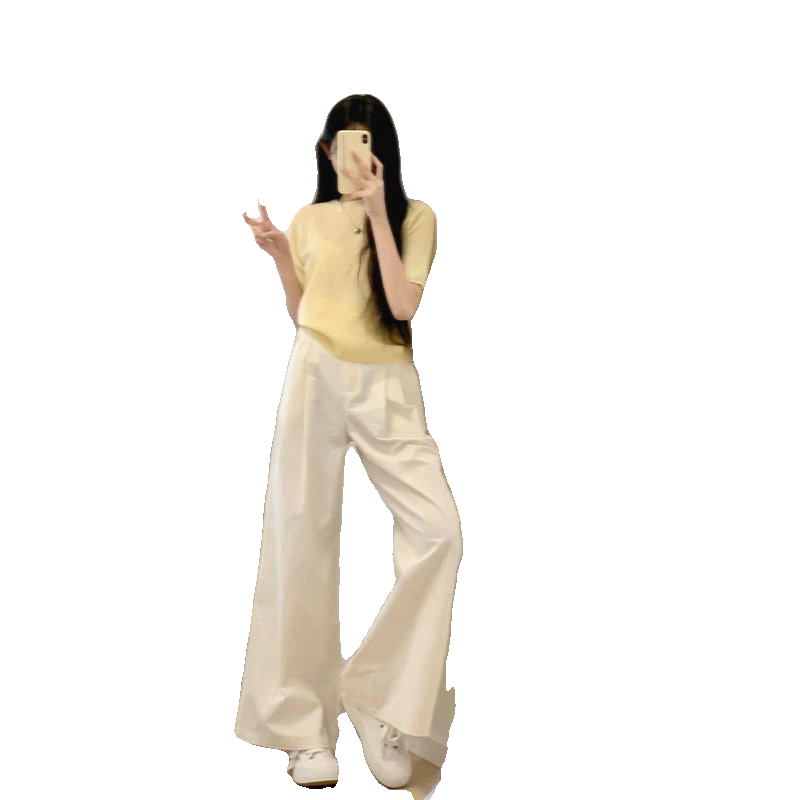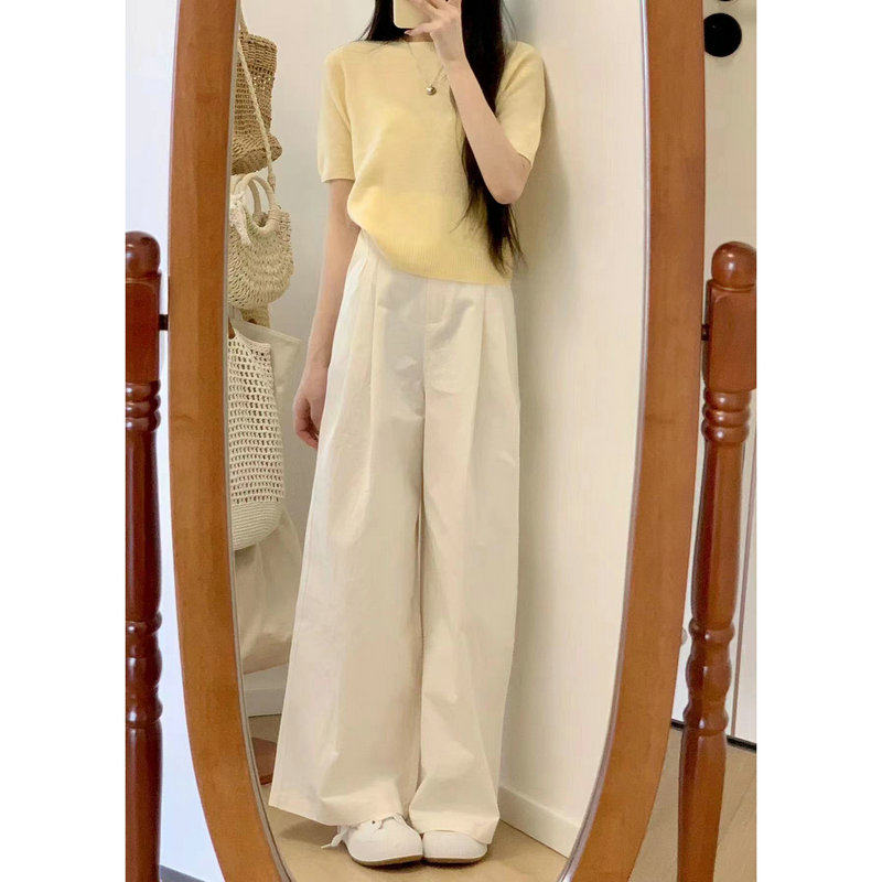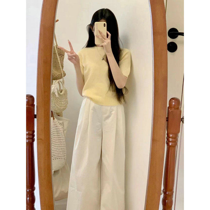 羊毛衫 加QY2203鹅黄色短袖 女 米白色F246014拖地阔腿直筒裤 博主款
