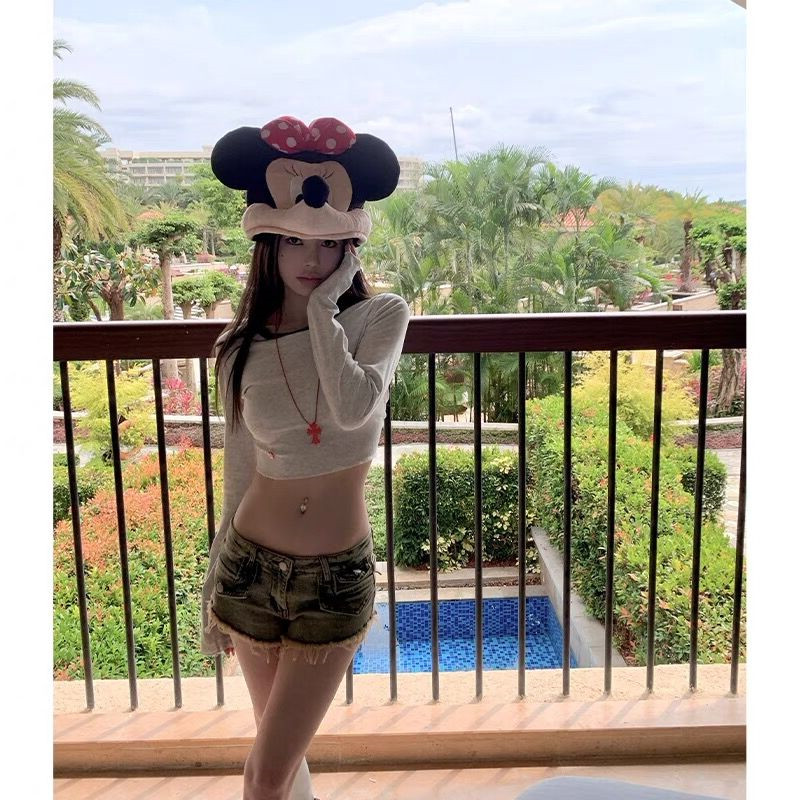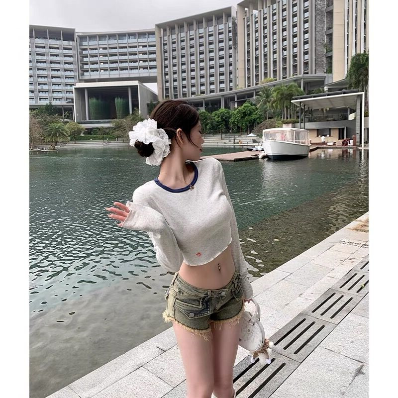 修身 小姐姐 本撞色圆领T恤女夏季 辣妹双版 显瘦辣妹上衣 常服挂美式