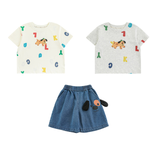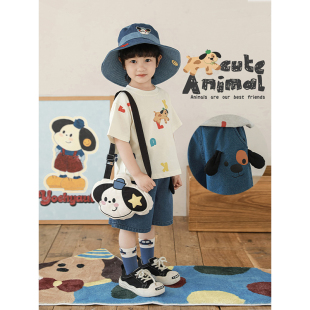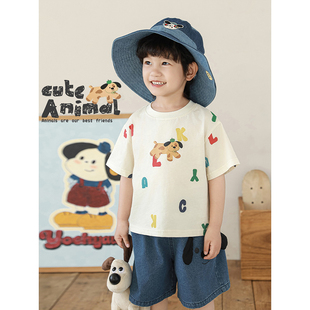 套装 幼悠男童2026夏季 圆领卡通T恤轻薄宽松阔腿牛仔短裤 短袖 新款