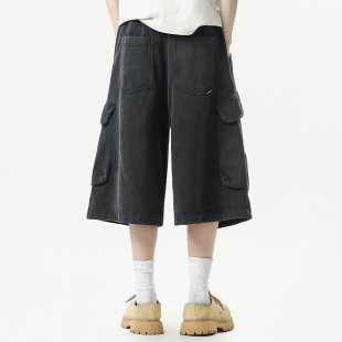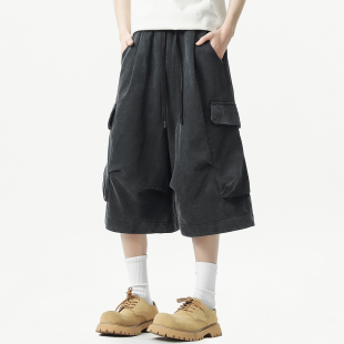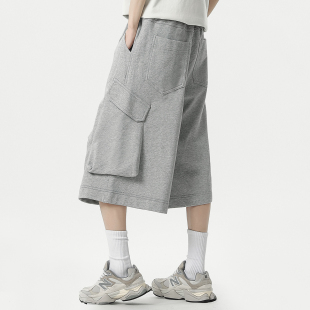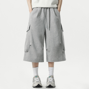 夏季 弹力工装 潮胖子宽松阔腿运动卫裤 男加肥加大码 做旧 七分中短裤