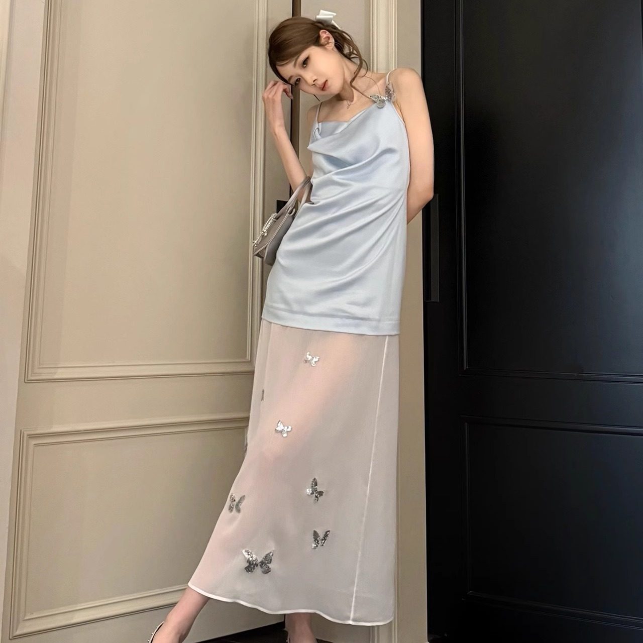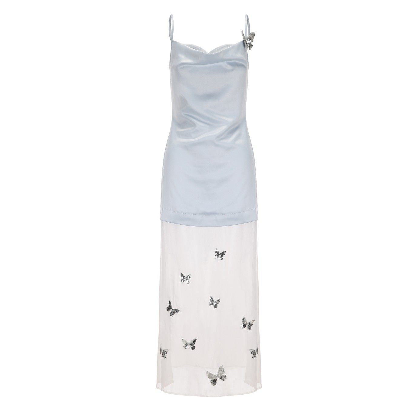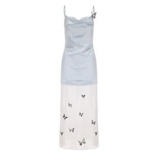 蓝色缎面荡领蝴蝶亮片吊带连衣裙 2025SS ARTE PURA