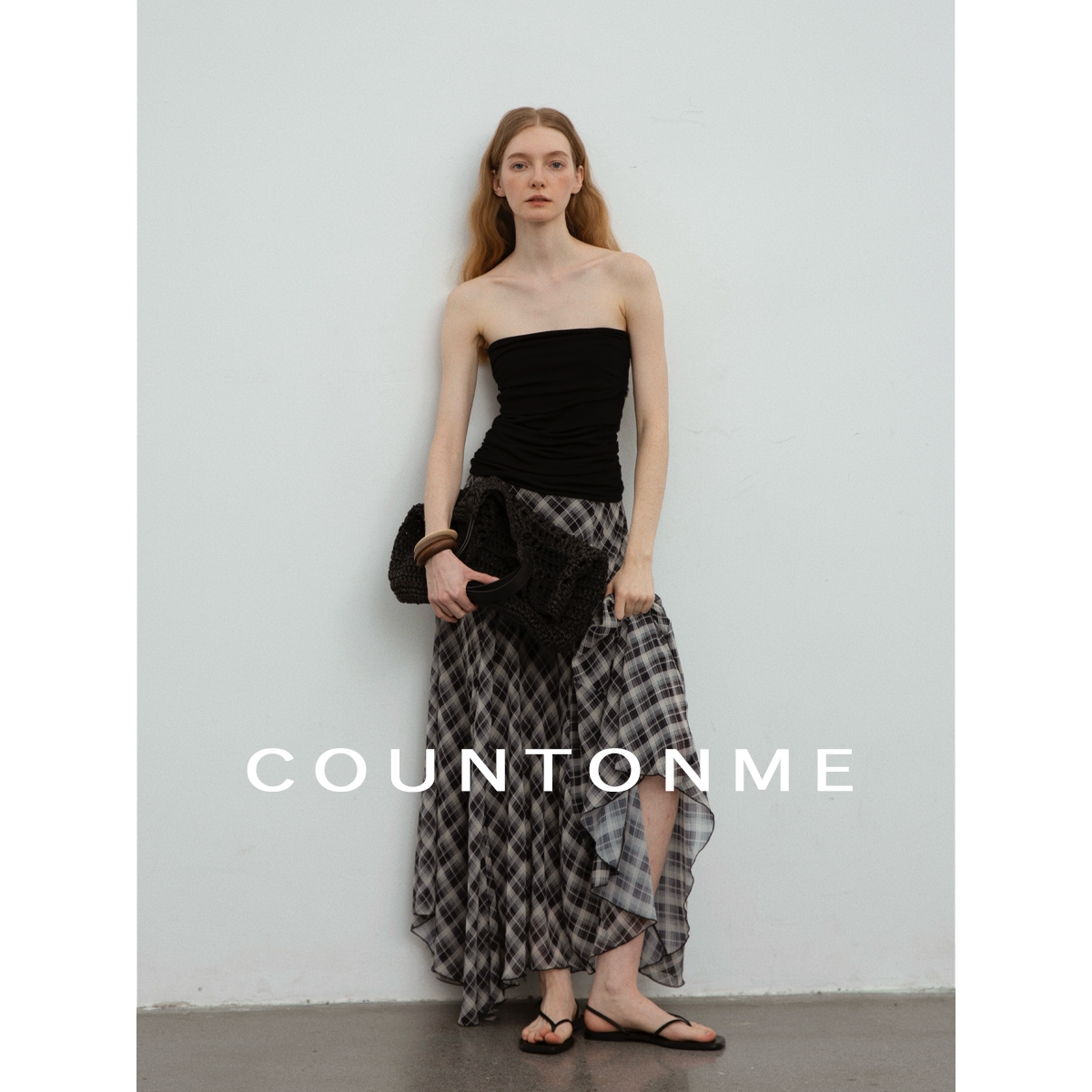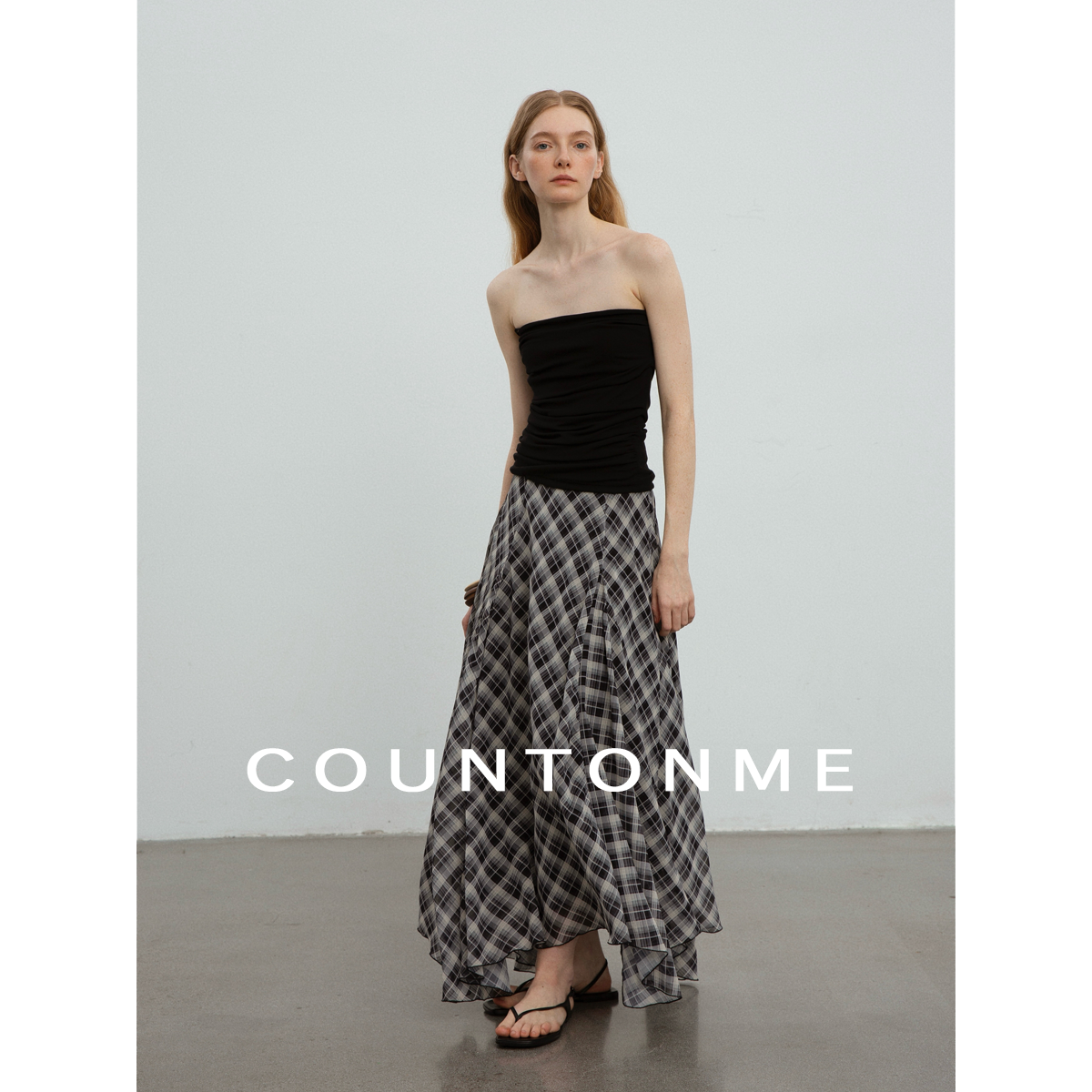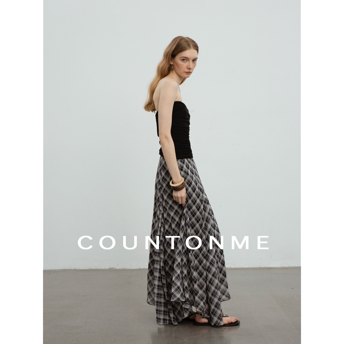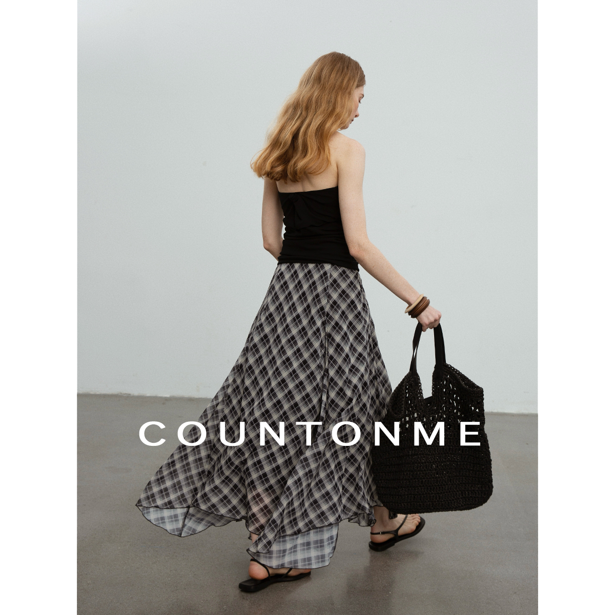 COUNTONME 飘逸不规则下摆复古格纹百搭显瘦半身裙 浪漫随性