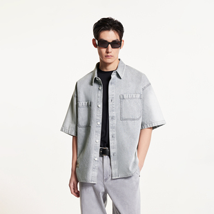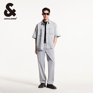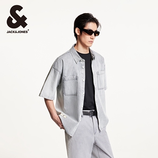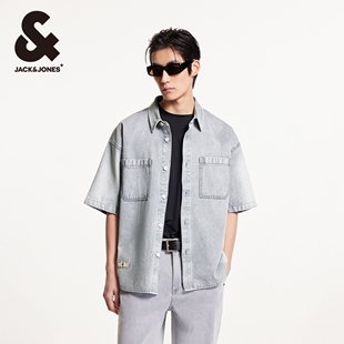 尖领衬衫 杰克琼斯男装 百搭潮酷纯棉字母刺绣宽松牛仔短袖 新款 春季