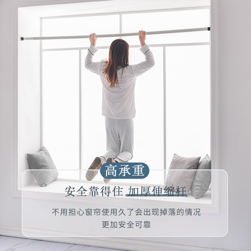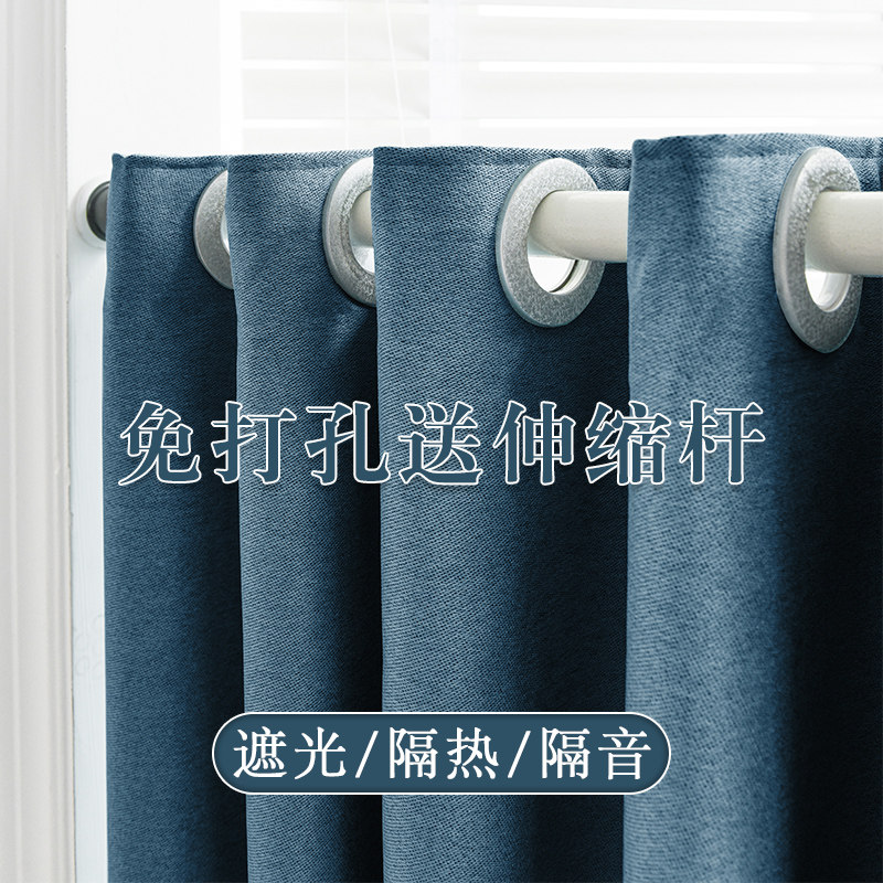 卧室飘窗免打孔安装 全遮光简易隔断帘 窗帘伸缩杆一整套2022年新款