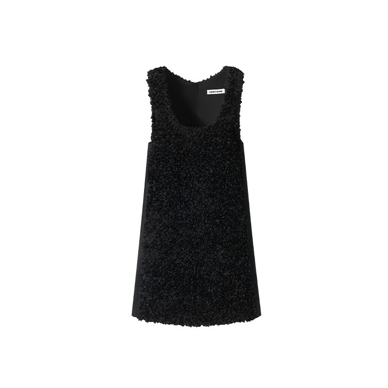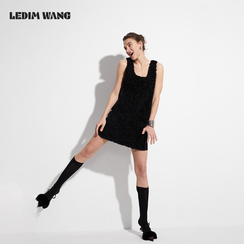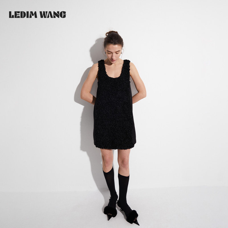 LEDIM 连衣裙女夏宽松高级感背心裙 WANG原创设计黑色立体花无袖