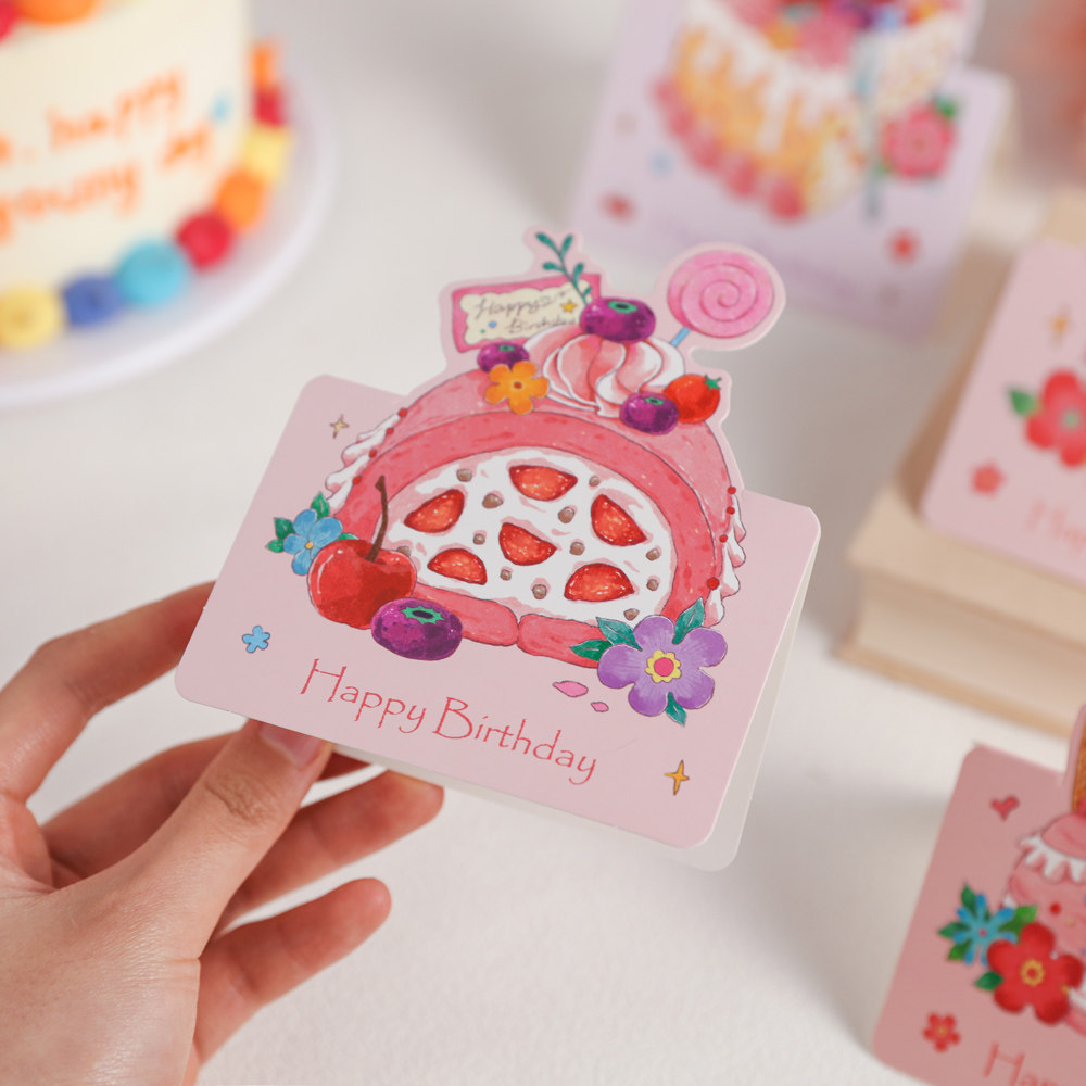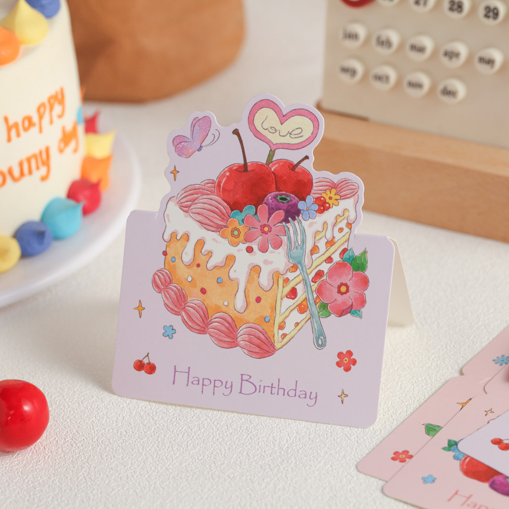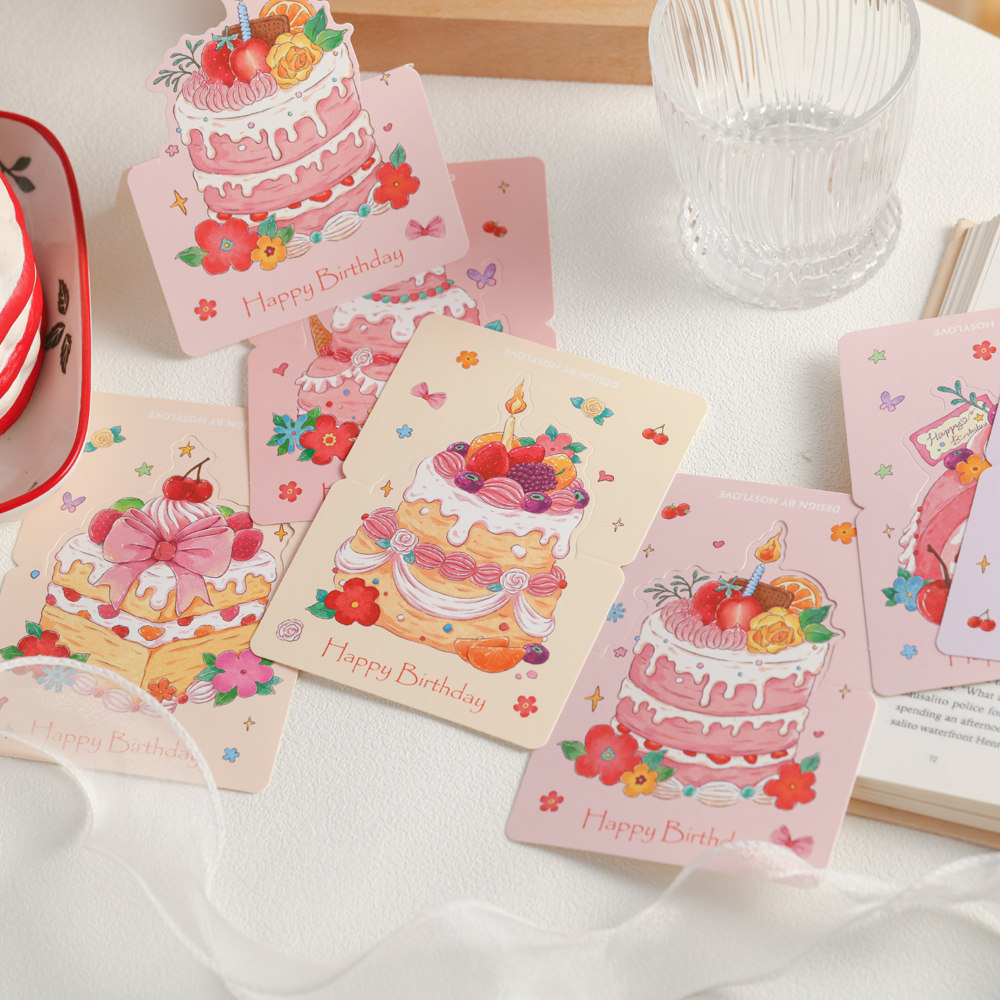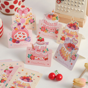 HOSYLOVE小贺卡生日蛋糕立体蛋糕折叠卡片高级感节日祝福文艺简约高颜值贺卡生日520通用烘焙卡祝福留言贺卡