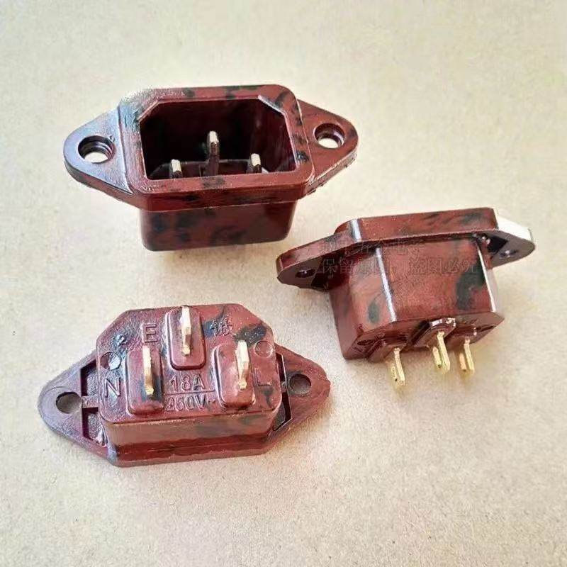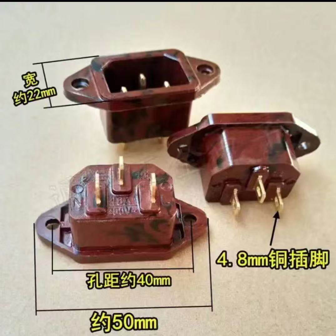 电木耐高温铜脚 电源三孔插线座 电锅电压力锅电源插座3脚品字形