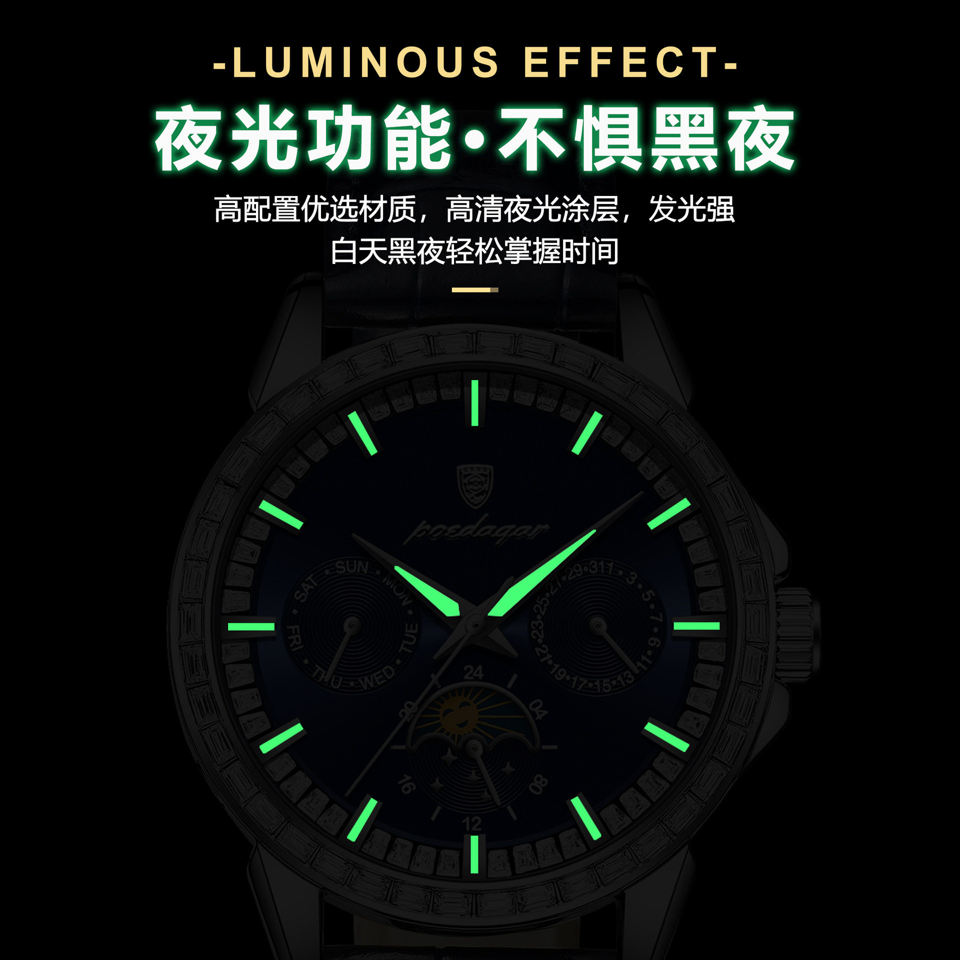 上海手表男自动机械表防水夜光星期日历国产腕表官方店正品 3009