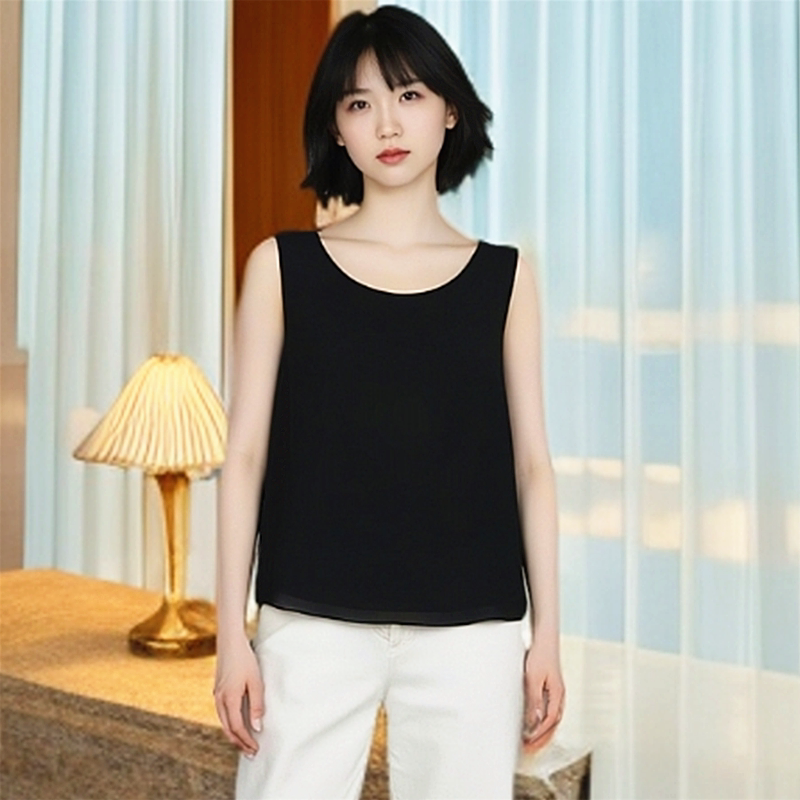 内搭无袖 高端时尚 宽松遮肚上衣 新款 200斤圆领雪纺吊带背心女夏季