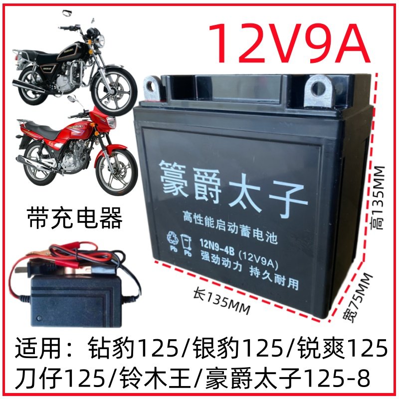 建设125骑跨摩托车电瓶12V7AH蓄电池助力踏板车水电池通用12V9A