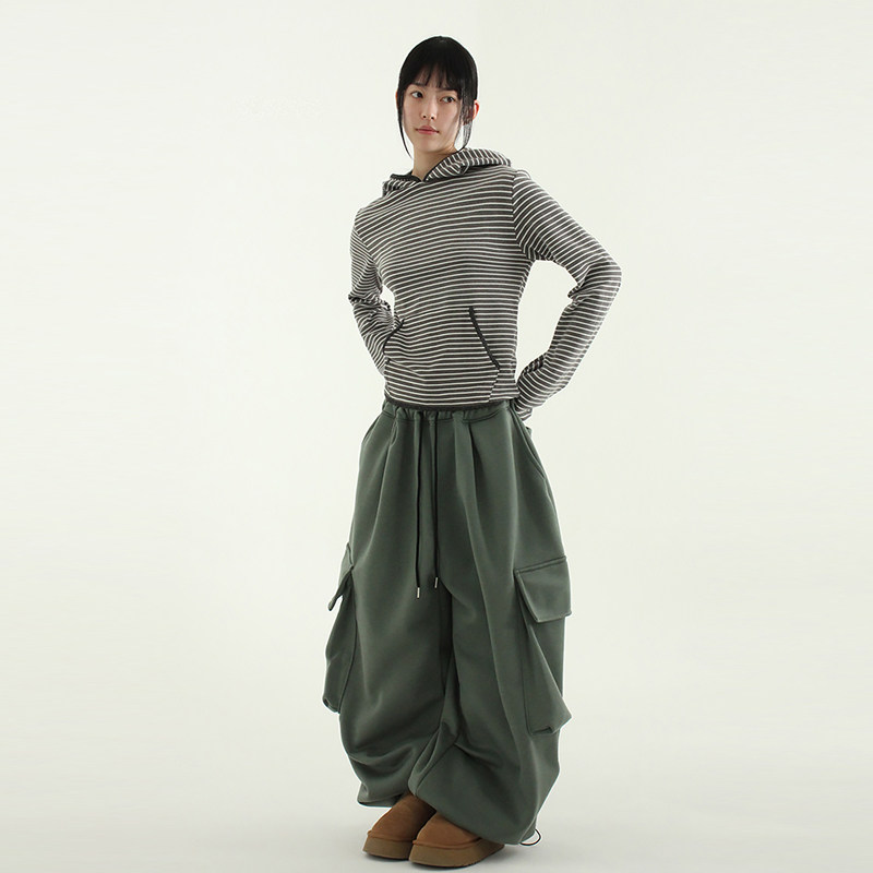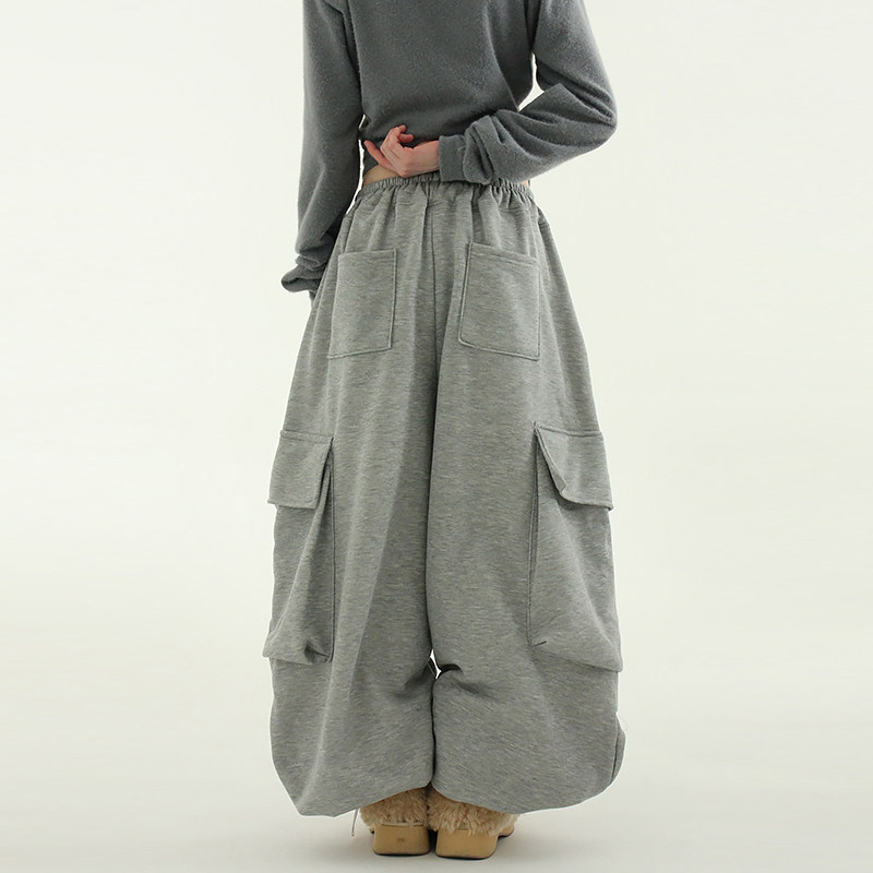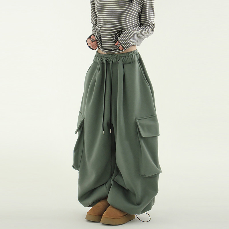 soft cotton pants裤 fleece banding lined wide 国内现货 cargo