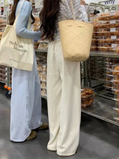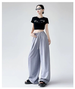 女 直筒裤 纳莉芬油奶风云朵宽松奶芙奶皮休闲裤 女撞色抽绳阔腿拖裤