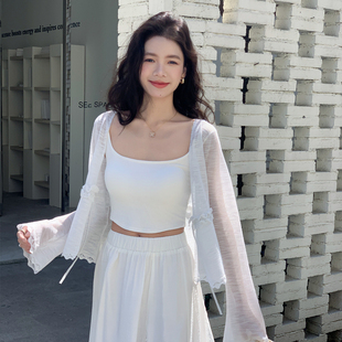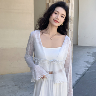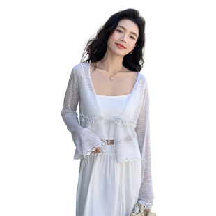 长袖 针织外套女夏薄款 防晒衫 外搭高级感配裙喇叭袖 披肩小坎肩 开衫