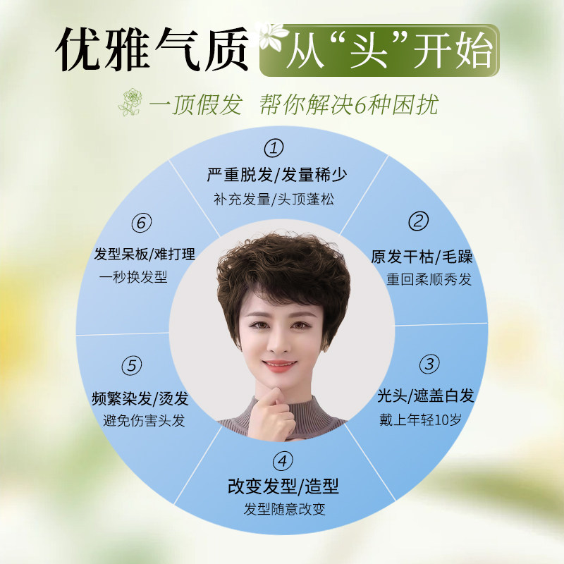 丝奈儿中老年女士妈妈款 轻薄透气发套 假发全头套全真发丝自然夏季