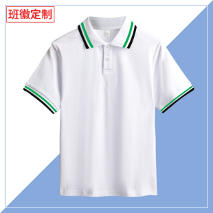 33一模一样纯棉男童白色短袖 T恤小学生校服园服儿童绿领定做校徽