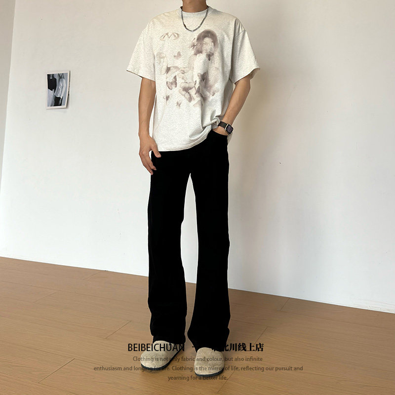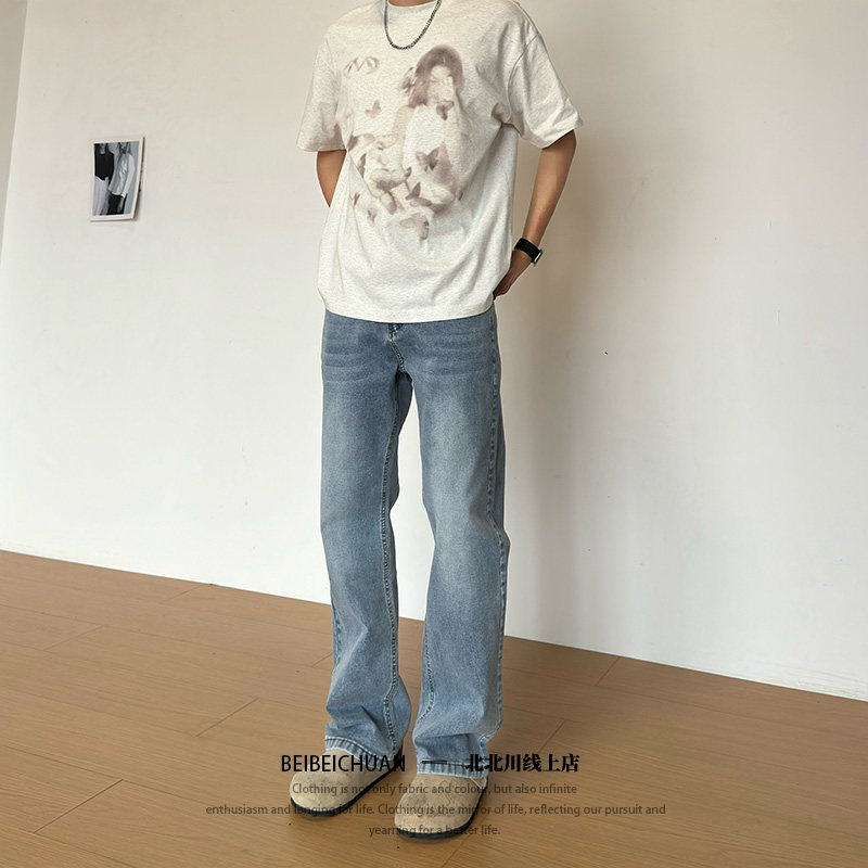 新款 潮牌直筒裤 男牛仔裤 子复古美式 男生冬 宽松阔腿裤 唐狮25春秋季