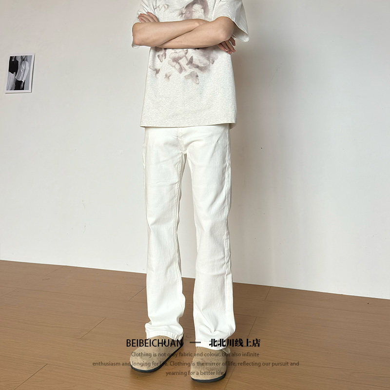 男士 直筒长裤 春夏季 高街潮牌休闲阔腿裤 子 加绒美式 黄泥松紧牛仔裤