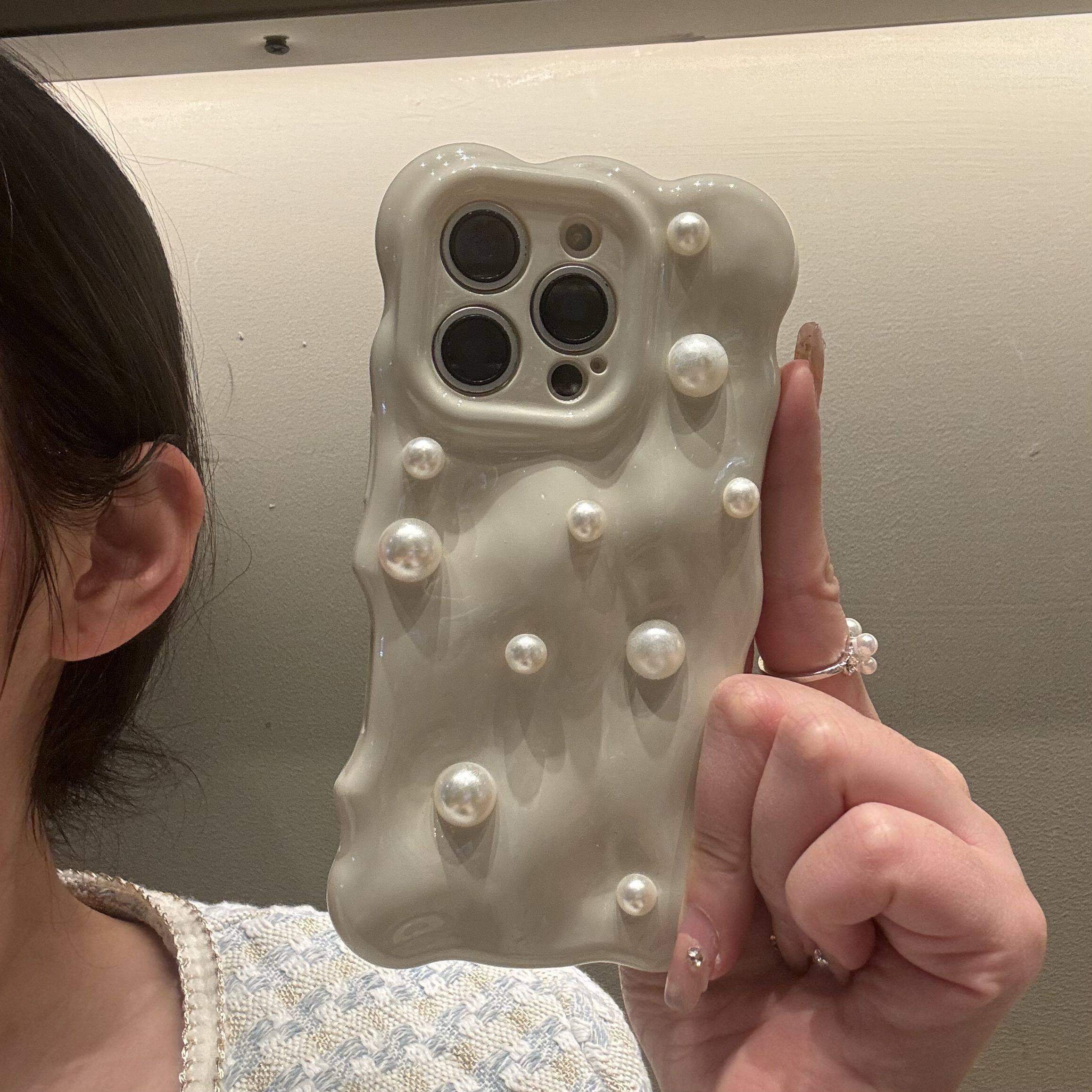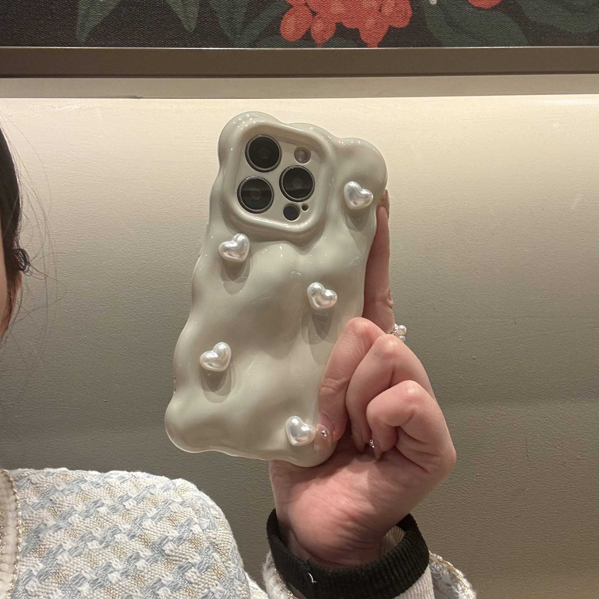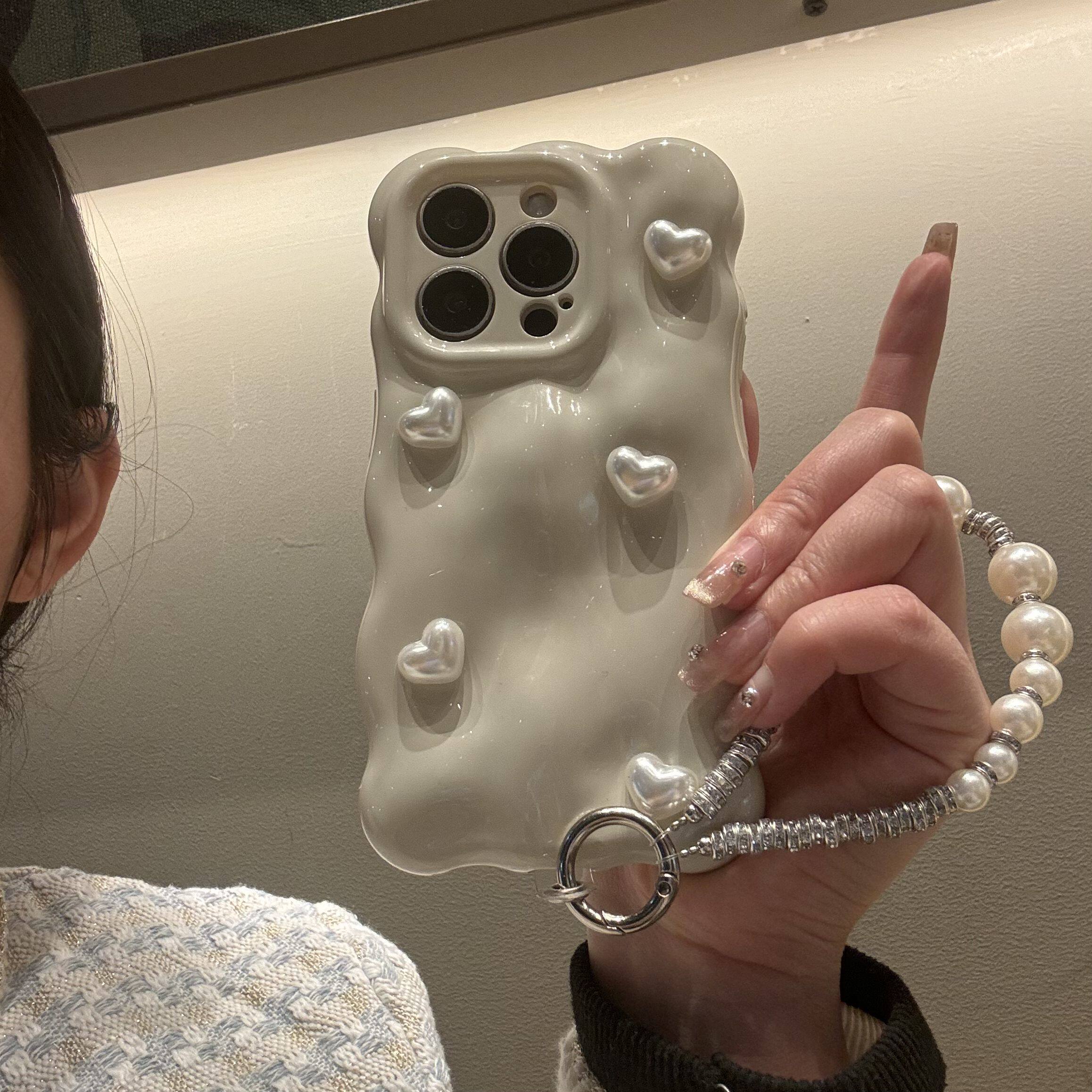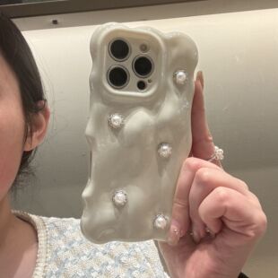 奶白ins简约立体花朵适用iphone17promax手机壳苹果16女款 15promax珍珠挂绳14小众高级感13防摔全包保护套ins