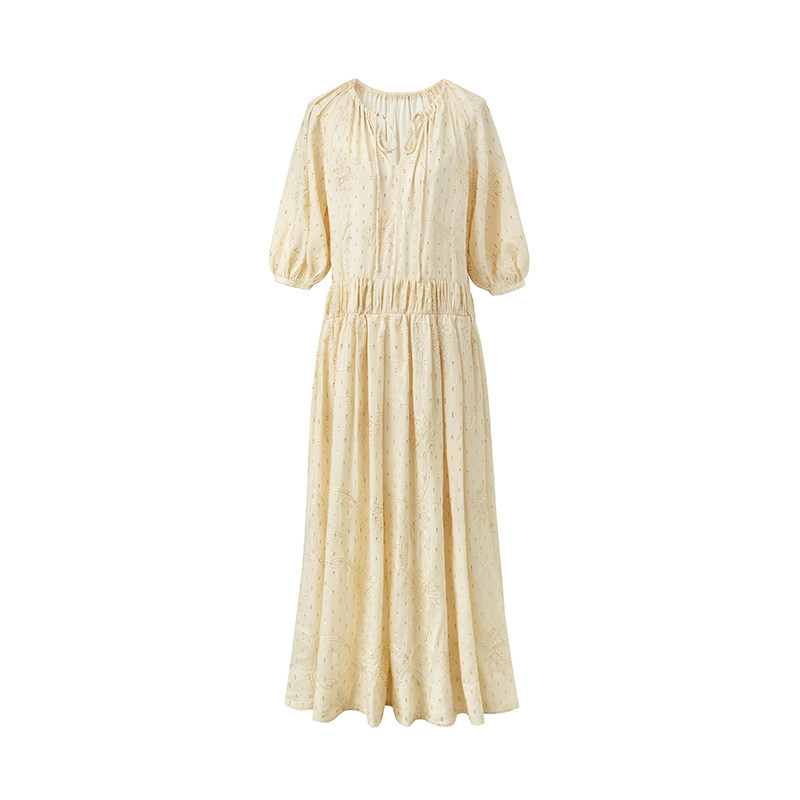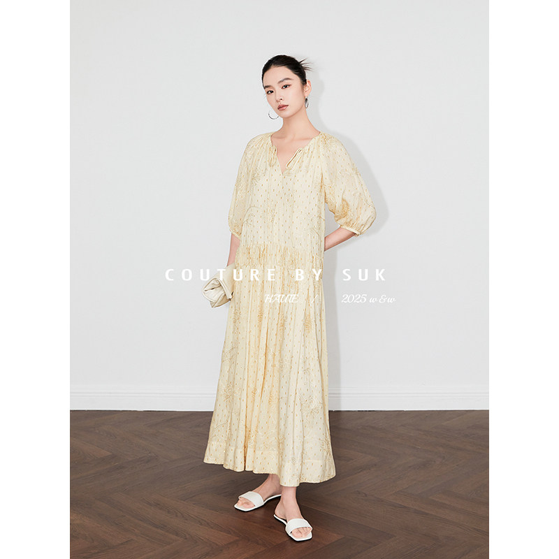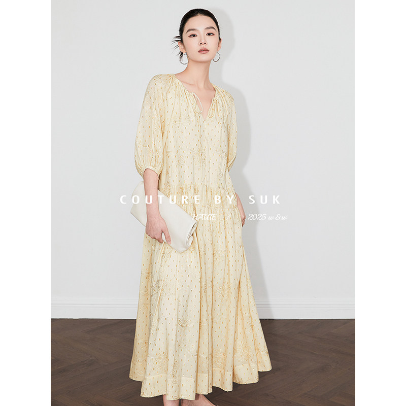 宽松显瘦气质长裙 轻奢金丝绣花面料连衣裙女夏季 SUK 春光如洗