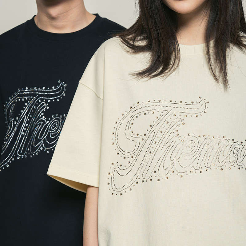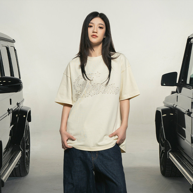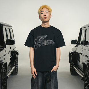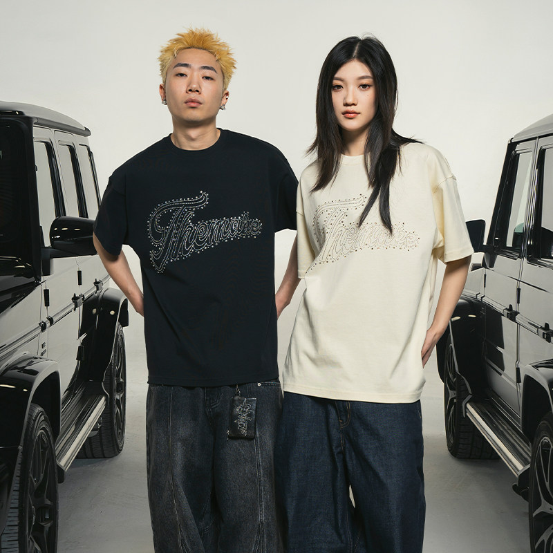 烫钻休闲高级宽松情侣上衣女 纯棉美式 Makemore短袖 t恤男2025新款
