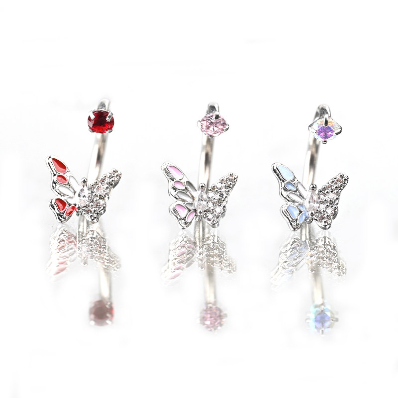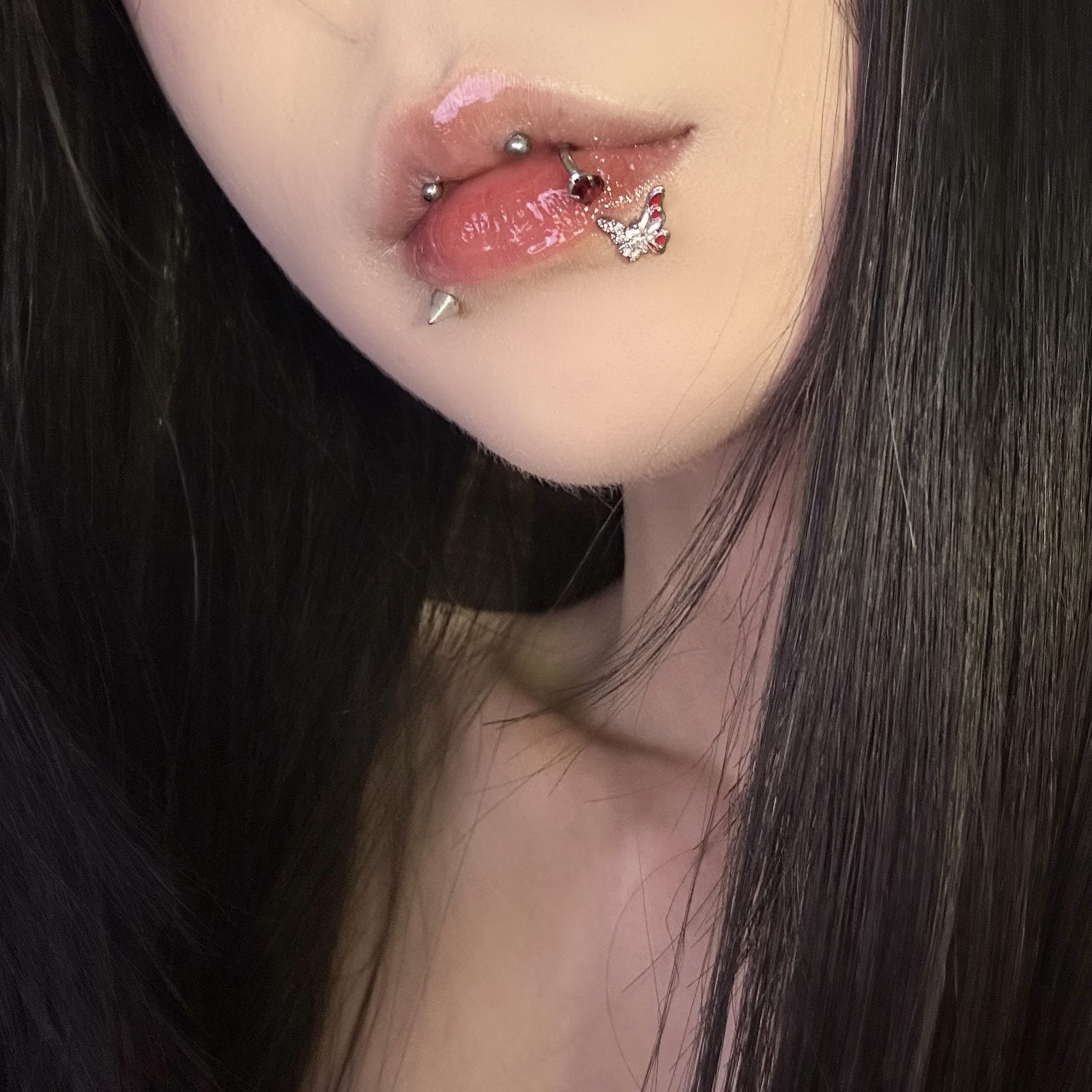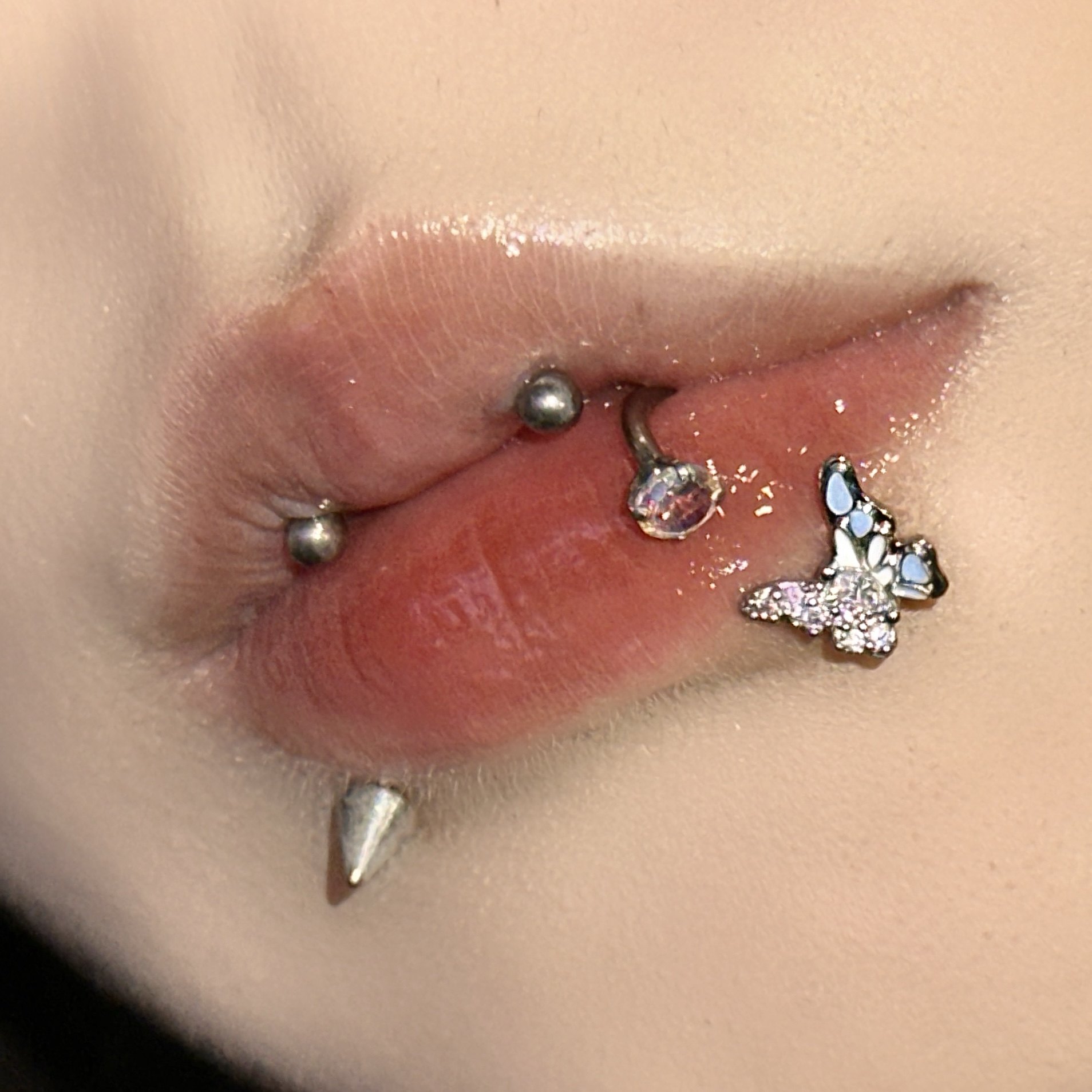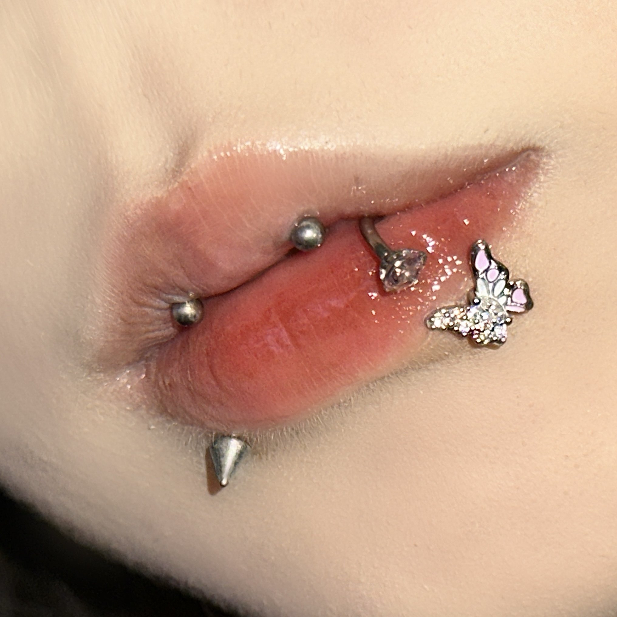 Raccon浣熊 钛钢唇环唇钉拼色内螺纹耳骨钉辣妹穿刺饰品 三色蝴蝶