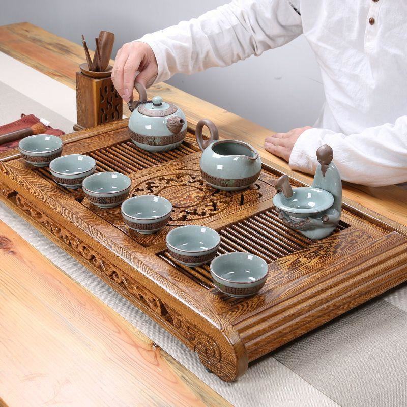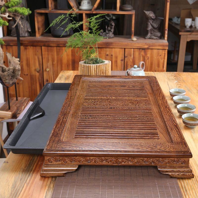 鸡翅木花梨实木大号茶盘抽屉式 茶托储水排水家用托盘功夫茶具茶台