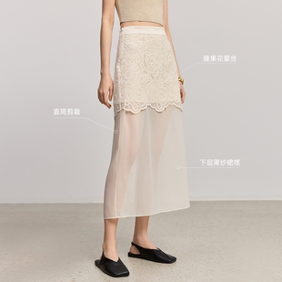 腰果花蕾丝绣花米白色半身裙直筒裙 复古法式 LILY2025新款 女装