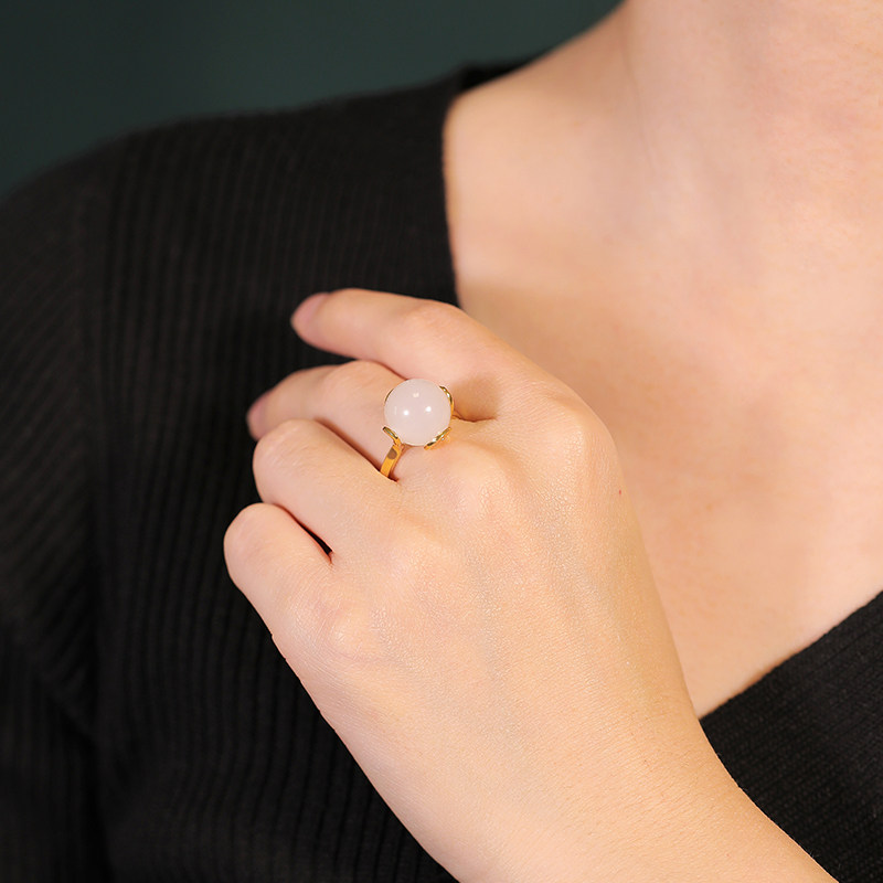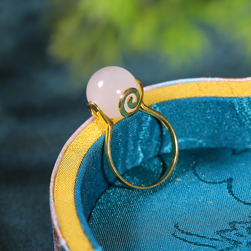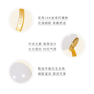 和合玉器和田玉羊脂白玉18k金镶玉玉珠戒指18K云纹简约黄金手饰品
