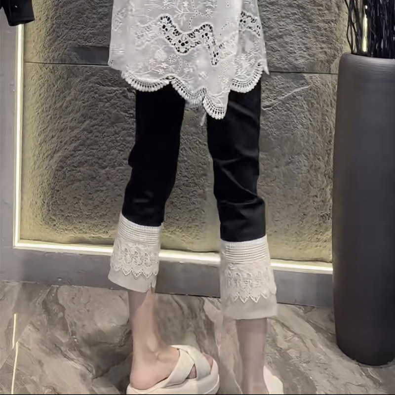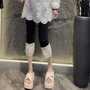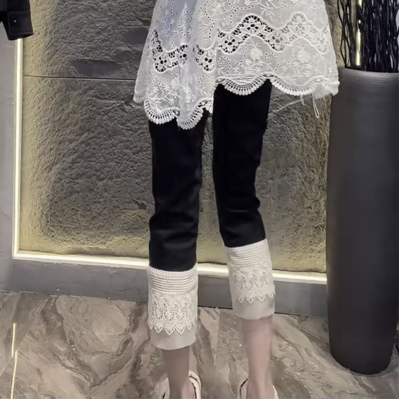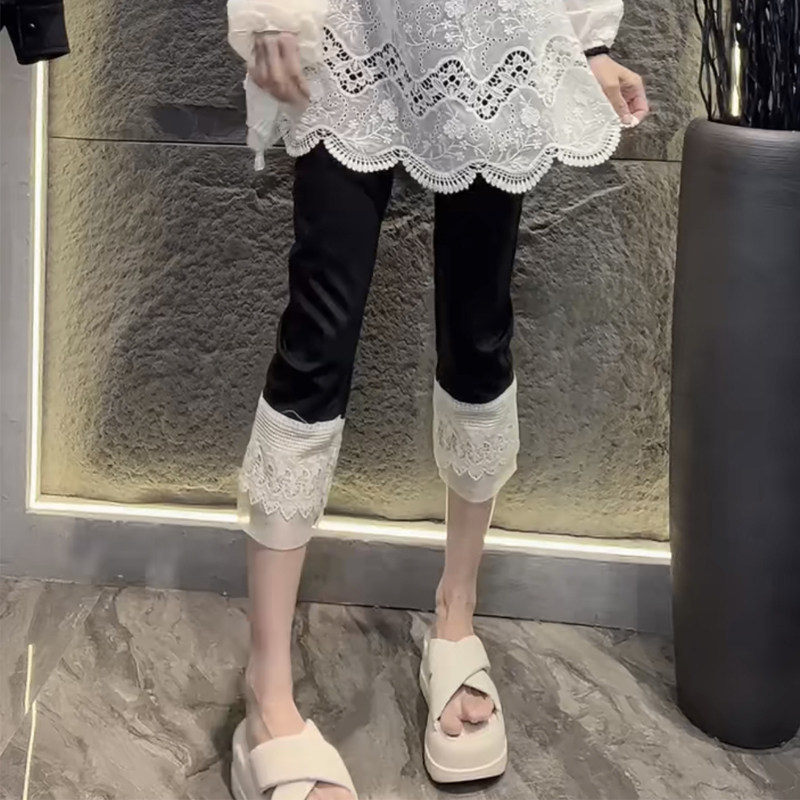 窄脚烟管裤 欧货蕾丝裤 弹力百搭显瘦休闲裤 女2025春夏新款 脚七分裤