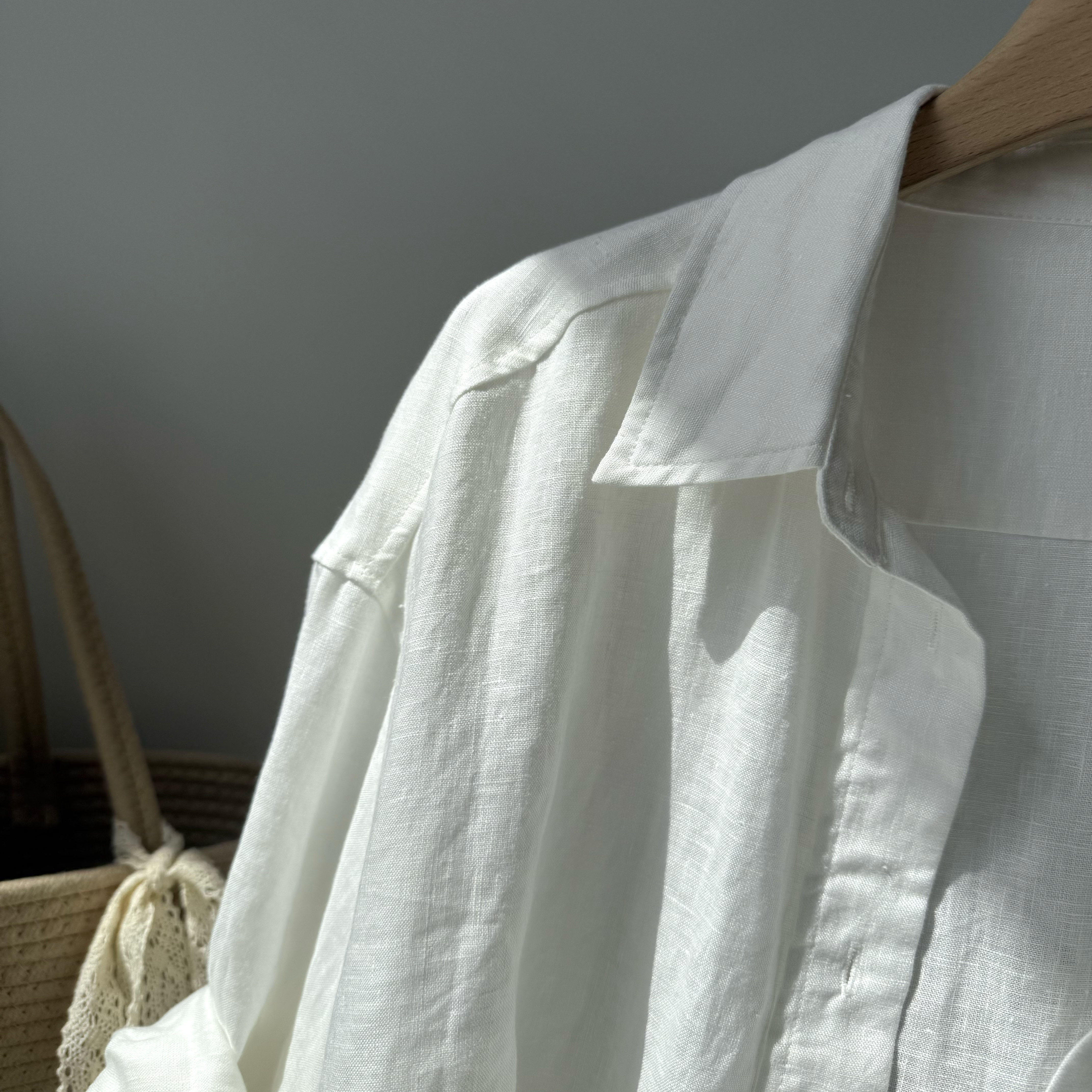 外搭高级富贵褶外衫 极简清冷系老钱风松弛感三季 可穿百搭亚麻衬衫
