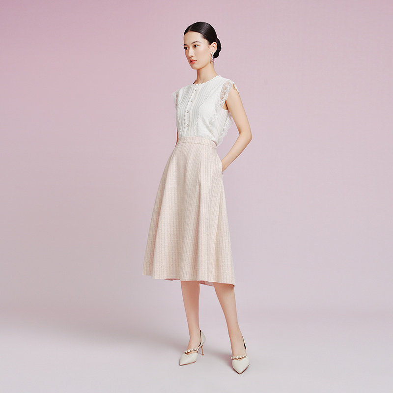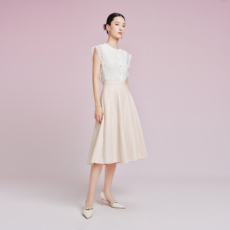 气质a字雅致花纱半身裙女 通勤时尚 Koradior拉珂蒂2025夏新款