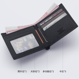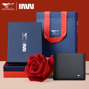 头层牛皮卡包青年皮夹子 简约正品 七匹狼钱包男士 真皮钱夹2026新款