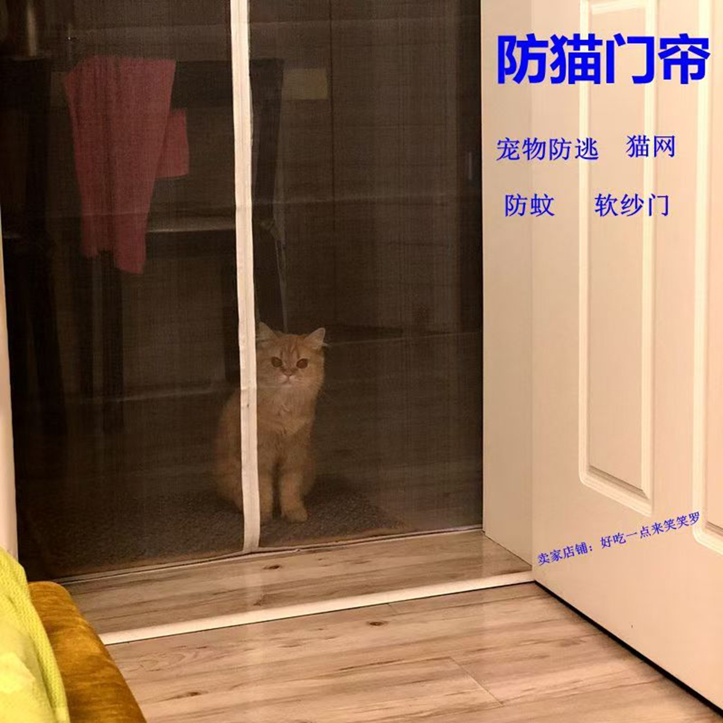 防猫门帘拉链款 宠物门栏挡猫网纱窗门隔断帘软纱门免打孔挡猫沙门