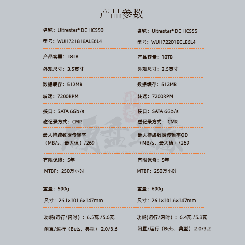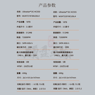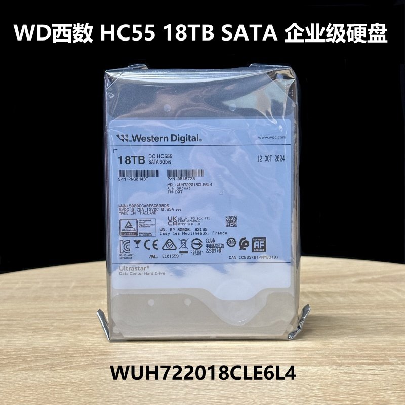 SATA企业级机械硬盘WUH722018CLE6L4 HC555 国行WD西数18TB HC550