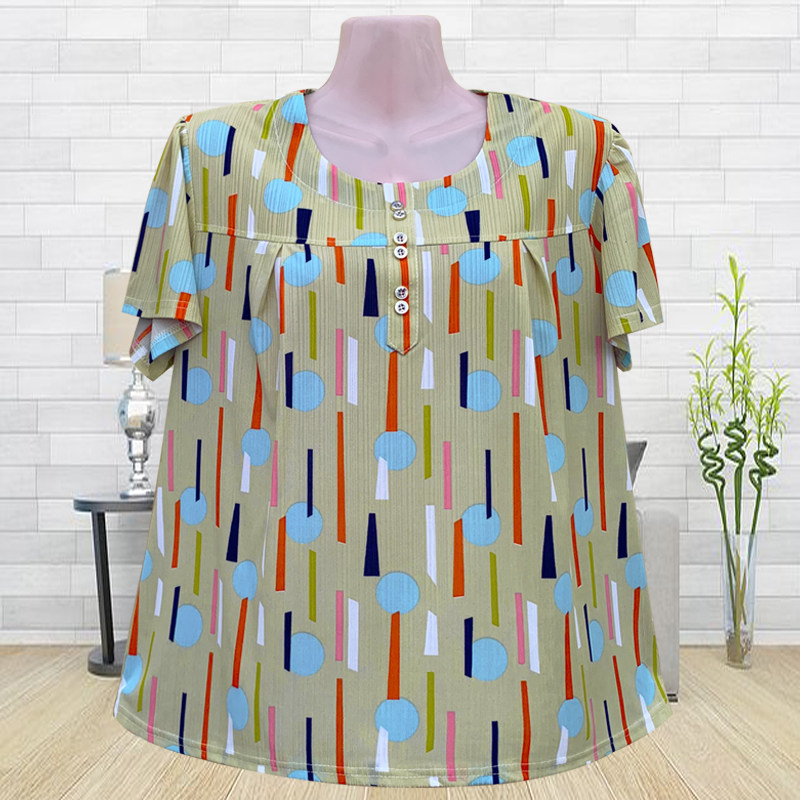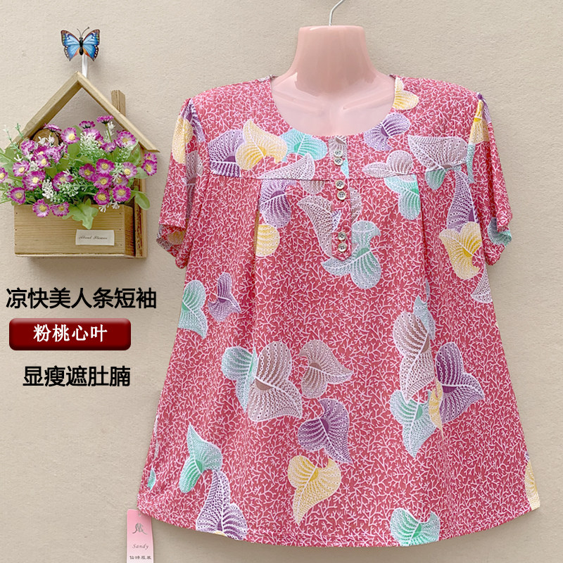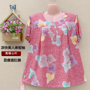 上衣胖太太200斤T恤花衫 中老年女装 加肥加大短袖 妈妈夏装 宽松 大码