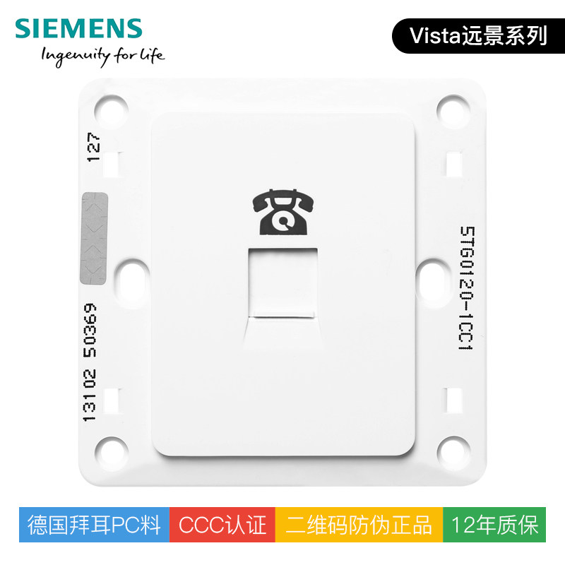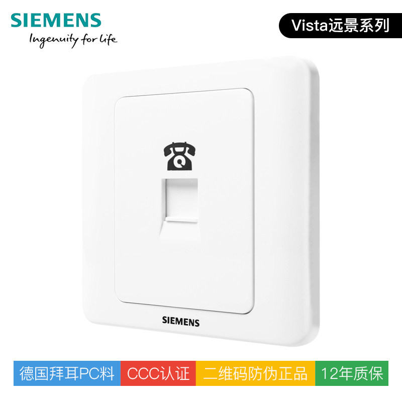 西门子开关插座面板远景雅白86型一位电话墙壁插座面板官方正品