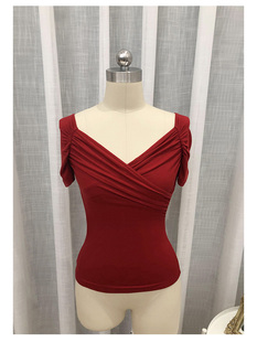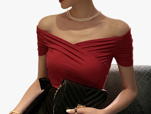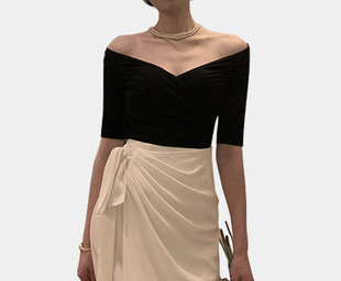 2穿领女装 打底衫 黑色一字领长袖 露肩短袖 上衣 T恤V领修身 2025夏装